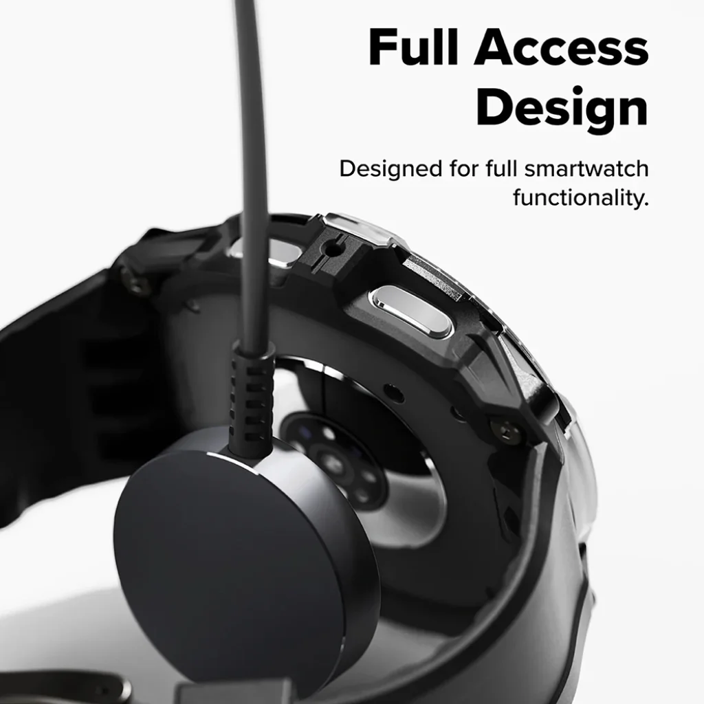 A Ringke Rugged Gear tok precíz kivágásokkal rendelkezik, amelyek biztosítják a Samsung Galaxy Watch8 összes funkciójához való teljes hozzáférést. Gond nélkül használhatja a gombokat, szenzorokat, és töltheti az órát anélkül, hogy levenné a tokot, megőrizve a smartwatch teljes funkcionalitását.