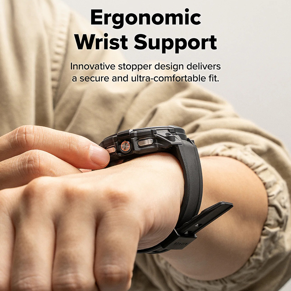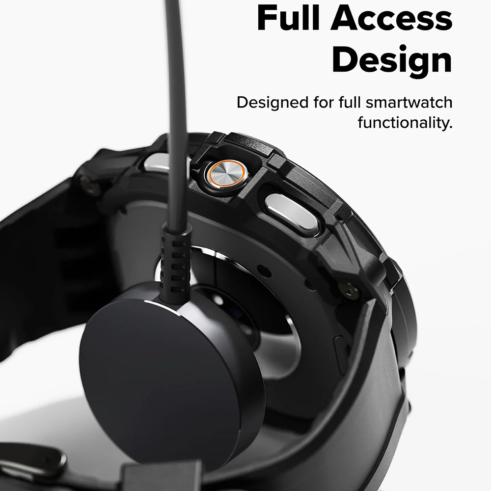 • Precíz kivágások: A "Full Access Design" gondoskodik arról, hogy az óra minden funkciója, gombja és a töltőportja is könnyen hozzáférhető maradjon a tok viselése közben is. Az "Open-Screen Cutout" dizájn védi a kijelzőt, miközben biztosítja a forgatható lünetta zavartalan használatát (amennyiben az óra rendelkezik ilyennel).