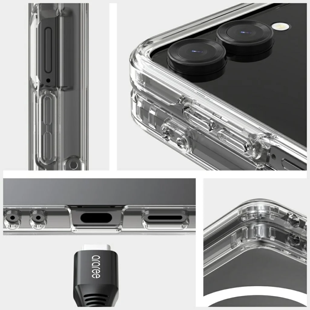 A tok minden részletét a maximális kényelem és biztonság szem előtt tartásával tervezték. A megemelt peremek védik a kijelzőt és a kamerát, megakadályozva a közvetlen érintkezést a felületekkel, akár letételkor, akár véletlen leejtés esetén. A tok megfelelt a katonai szabvány szerinti ejtésállósági tesztnek, ami igazolja tartósságát a mindennapi, intenzív használat során is. A háromdimenziós oldalgomb-kialakítás kellemes, határozott nyomásérzetet biztosít, az univerzális kivágások pedig lehetővé teszik különféle kábelek és kiegészítők egyszerű használatát. Emellett a Duple M teljes mértékben kompatibilis más Araree termékekkel is, például a Magfie Pod, Stick Pocket M vagy A-Tok kiegészítőkkel, így könnyedén kialakíthatsz egy egységes és funkcionális szettet.