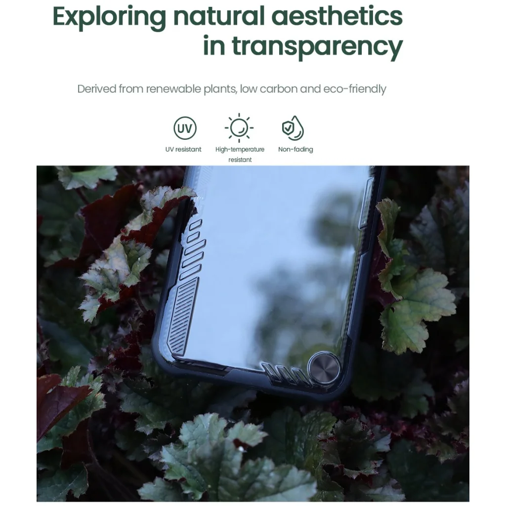 - Ez az egyedülálló tok megújuló növényi forrásokból, például cukornádból származó, bio-alapú DURABIO™ anyagok felhasználásával készült. Ez a fejlett gyártási folyamat jelentősen csökkenti a szénlábnyomot, környezetbarátabb alternatívát kínálva a hagyományos műanyagokkal szemben.