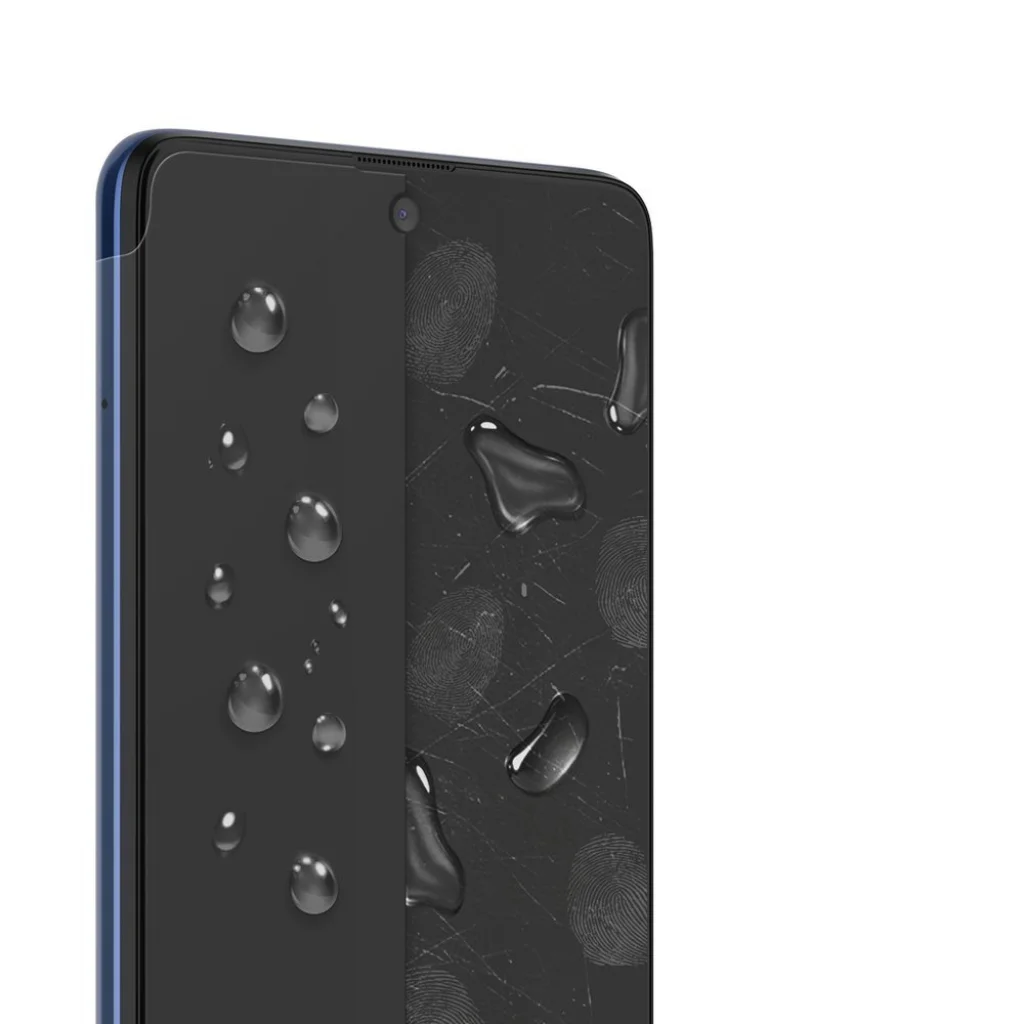 Két darabos kijelzővédő fólia szett, 4 rétegű kialakítással és Oleophób bevonattal az ujjlenyomatok által okozota szennyeződések ellen. Könnyen felhelyezhető, abszolút tok barát. Legfelső rétegének köszönhetően, kevésbé hajlamos a szennyeződések mágnesként vonzására. Nem üvegfólia!