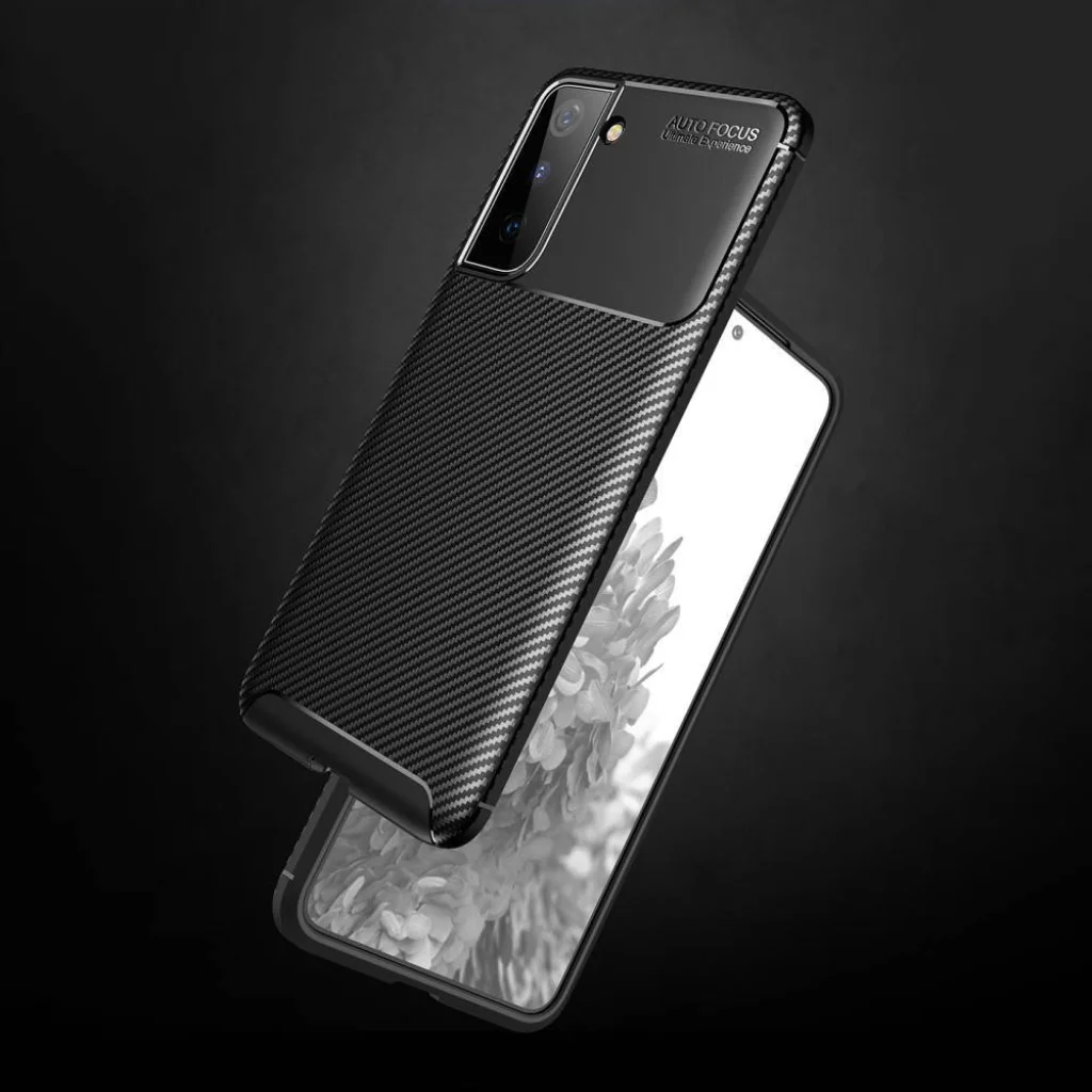 Samsung S21+ Plus Armored szénszál mintájú TPU tok fekete