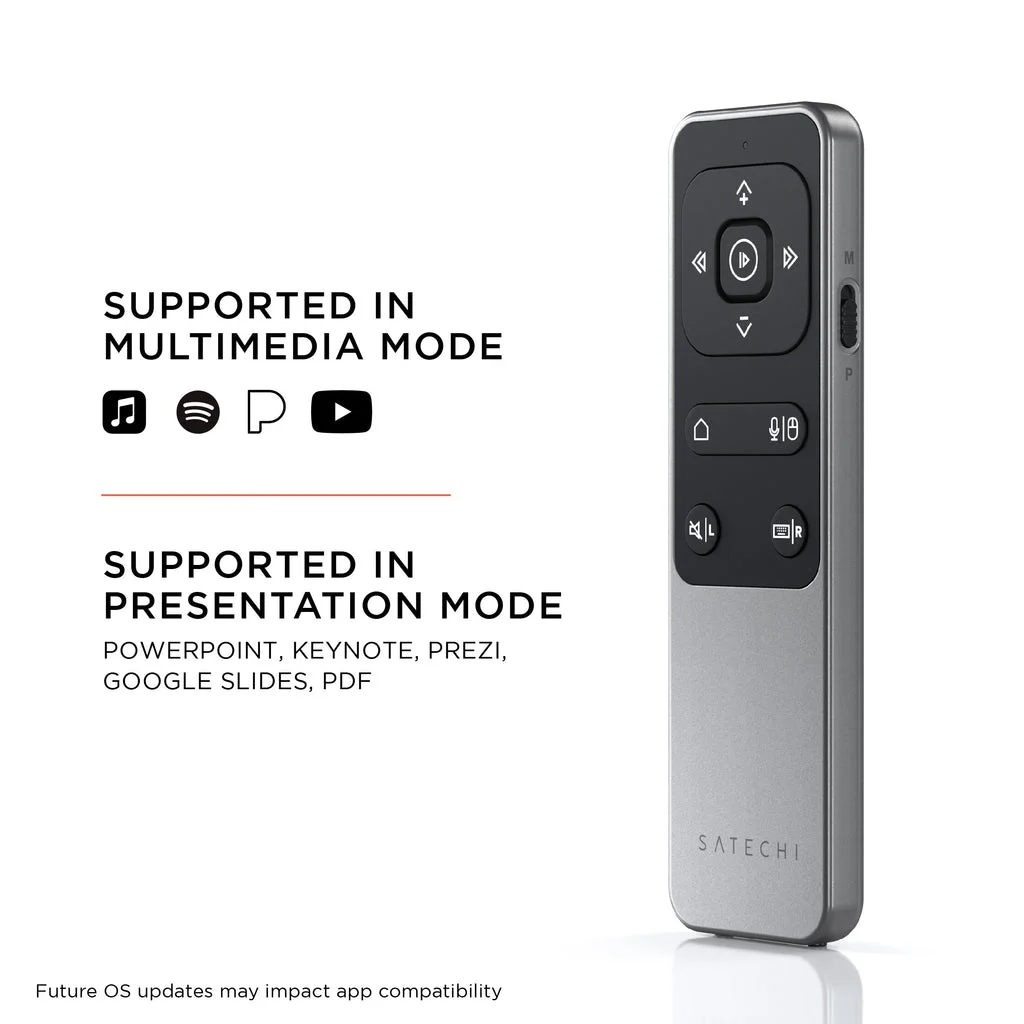 Az R2 Bluetooth multimédiás távirányító a tökéletes médiatárs eszköz, amely tökéletes a munkájának irányításához az otthoni lejátszási listáktól kezdve a képernyőn megjelenő alkalmazásokban való navigálásig vagy a prezentációk vezetéséig. A könnyen használható Bluetooth, a vezérlő nyilak, a Siri hang és egyebek révén az R2 távirányító kényelmes médiaelérést és a képernyőn történő vezérlést tesz lehetővé az Ön keze ügyében.