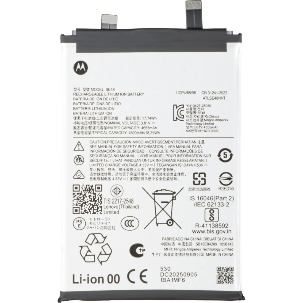 SE48 akkumulátor Motorola Edge 70-hez. Ez egy Motorola licenccel ellátott pótalkatrész, amelyet a sérült akkumulátor cseréjére használhat a telefonjában. Cserélje ki a régi akkumulátort, és szerelje fel telefonját egy új, eredeti akkumulátorral, amely biztosítja a szükséges energiát.