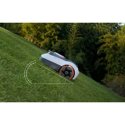 A Zero-Turn™ technológiával ellátott négykerék-meghajtás lehetővé teszi a robot számára, hogy a helyszínen forduljon anélkül, hogy tépné a gyepet vagy nyomokat hagyna. A 180°-os fordulási mechanizmus pontos manőverezést tesz lehetővé, így a készülék hatékonyan mozoghat szűk járatokban és akadályok között. A robot akár 4 cm-es függőleges átjárókat is képes kezelni, így szabadon leküzdheti a szegélyeket, éleket és a kertben található kis szintkülönbségeket. A speciálisan tervezett terepjáró kerekek lehetővé teszik, hogy akár 55% (29°) meredekségű lejtőkön is működjön, míg a beépített ESC és TCS rendszerek biztosítják a stabilitást és a tapadást nedves vagy egyenetlen felületeken.