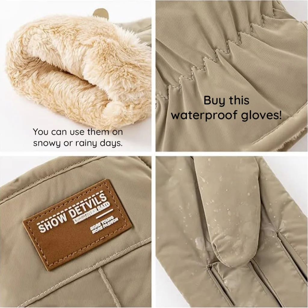 - Vízálló külső anyag: Az innovatív, vízálló külső anyag design garantálja, hogy kezei szárazak maradjanak esős vagy havas időben is. Ideális választás síeléshez, kerékpározáshoz, túrázáshoz és minden egyéb szabadtéri tevékenységhez. Használja nyugodtan havas vagy esős napokon is!