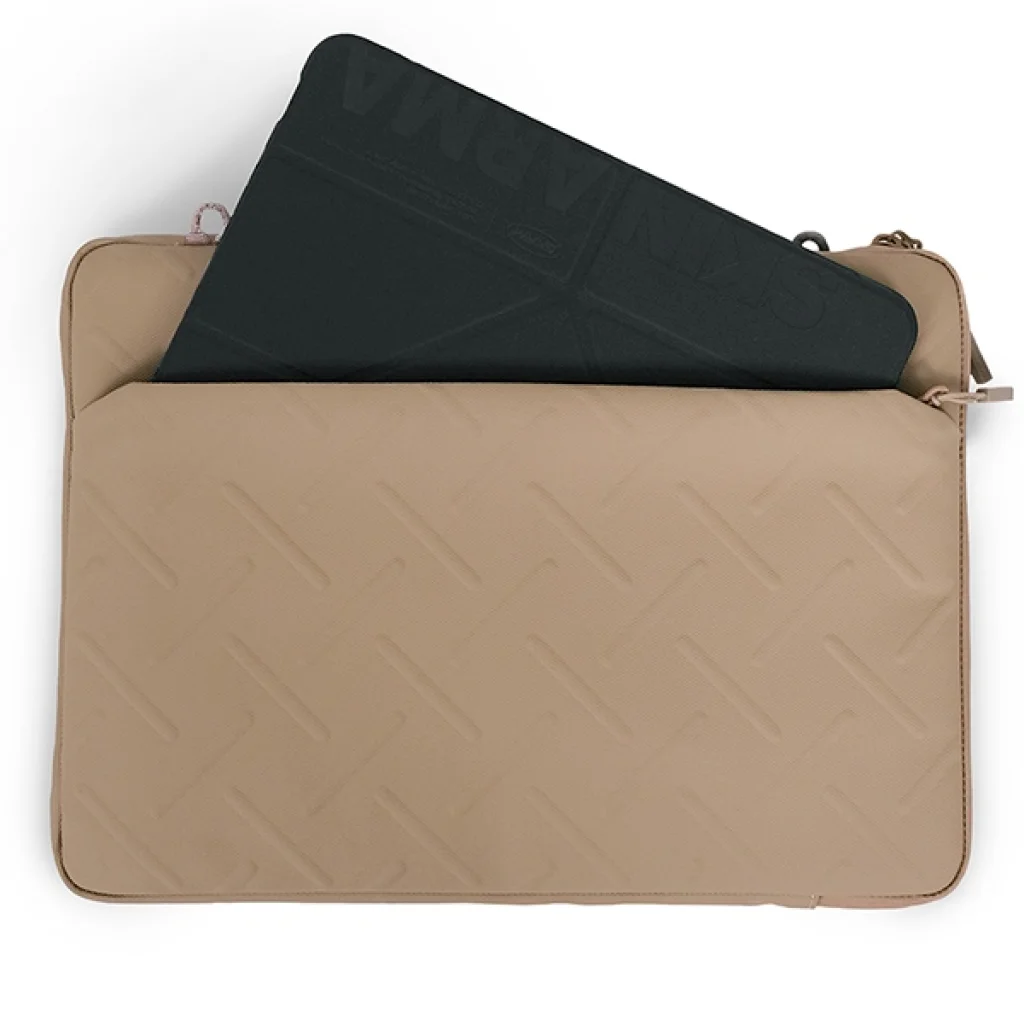 A tok belseje puha párnázattal bélelt, ami elnyeli az ütéseket és védi a laptopot a sérülésektől. A fő cipzáras záródás a rövid oldalon található, gyors hozzáférést biztosítva a tartalomhoz. Ezenkívül az első és hátsó cipzáras zsebek extra helyet biztosítanak kisebb kiegészítők, mint például kábelek vagy egy jegyzetfüzet számára.