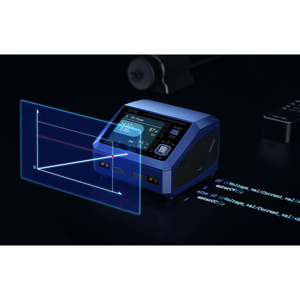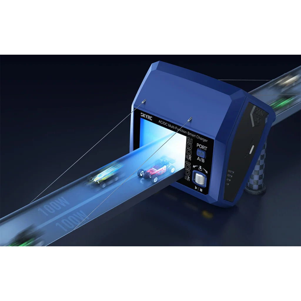 A SkyRC D100neo Töltő kombinálja a hatékony töltést akár 25W teljesítménnyel és a fejlett kisütést feszültségkiegyenlítési képességgel, biztosítva az akkumulátor optimális állapotát és élettartamát. Az eszköz automatikusan elosztja a teljesítményt a portok között, maximalizálva az egyedi akkumulátorok töltési hatékonyságát és biztosítja a gyors töltést, amikor mindkét portot egyidejűleg használjuk. Továbbá biztosít ±0.02V kiegyenlítési pontosságot, ami garantálja a feszültség optimalizálását minden cellánál, amit kritikus az élettartamuk meghosszabbítása és a teljes kapacitás fenntartása szempontjából.