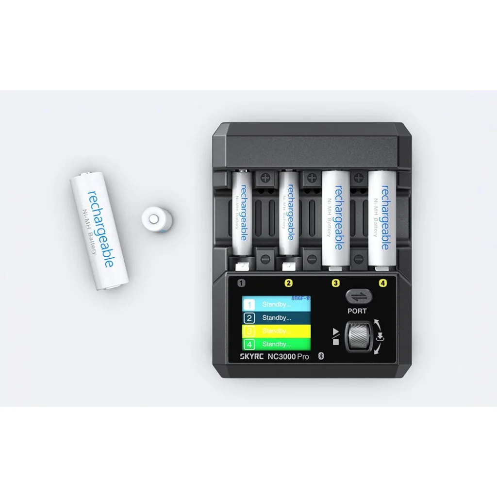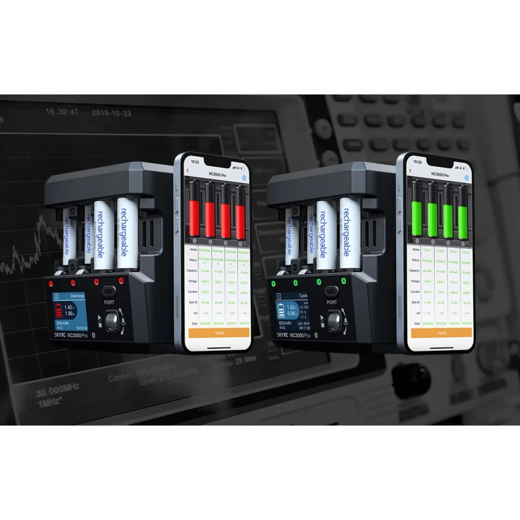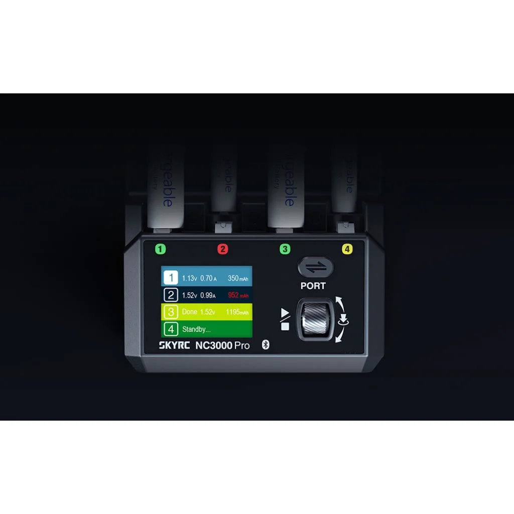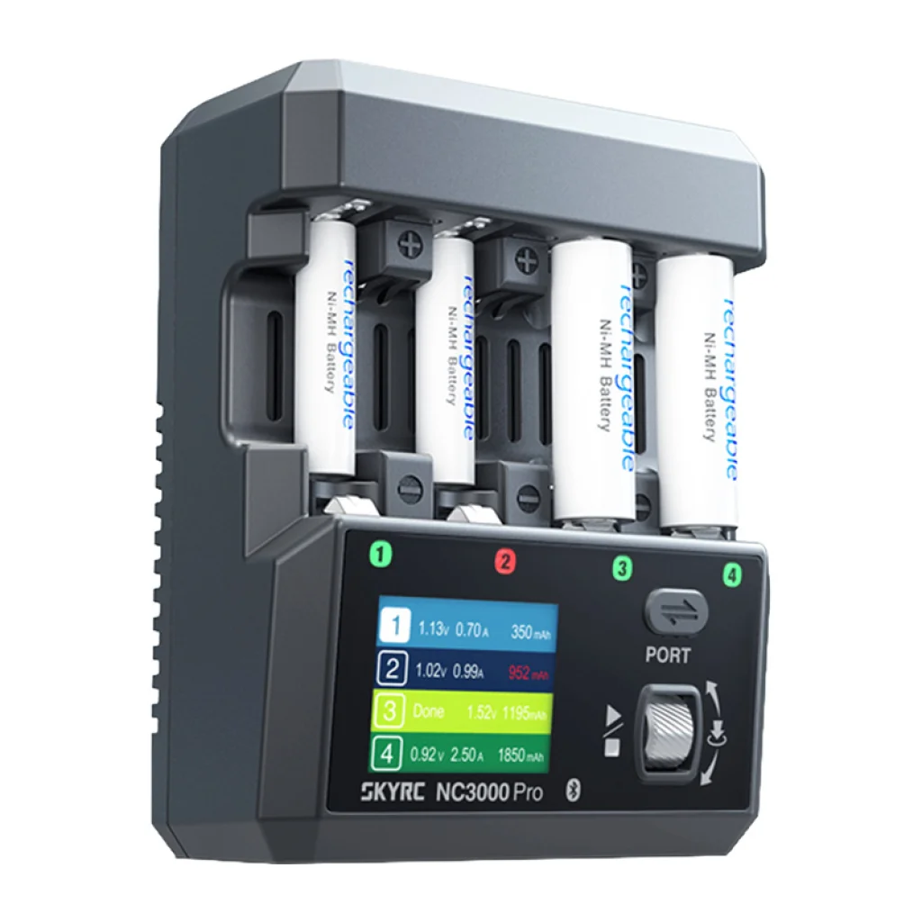 SkyRC NC3000 Pro töltő egy fejlett NiMH és NiCd akkumulátorokhoz készült töltő, amely a magas teljesítményt a töltési folyamat teljes ellenőrzésével ötvözi. A PD (Power Delivery) és QC (Quick Charge) szabványok támogatása nagyon magas működési teljesítményt és cellánként akár 3000 mA-es töltést tesz lehetővé. A készülék négy független nyílással, legfeljebb 6 intelligens üzemmóddal, állítható töltési és kisütési árammal, az akkumulátor állapotához való automatikus paraméterbeállítással, valamint Bluetooth-on keresztül mobilalkalmazásból történő kényelmes vezérléssel rendelkezik. Emellett aktív hűtőrendszerrel, fejlett biztonsági funkciókkal, valamint akkumulátor regenerálási és tesztelési funkciókkal is el van látva, melyek az NC3000 Pro-t átfogó eszközzé teszik az energiafelhasználás kezeléséhez otthon, a műhelyben vagy professzionális alkalmazásokban.