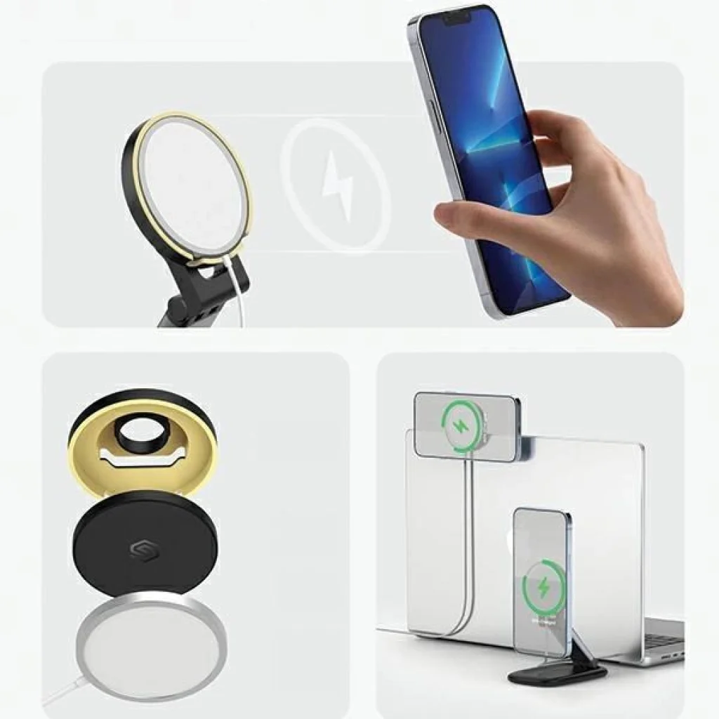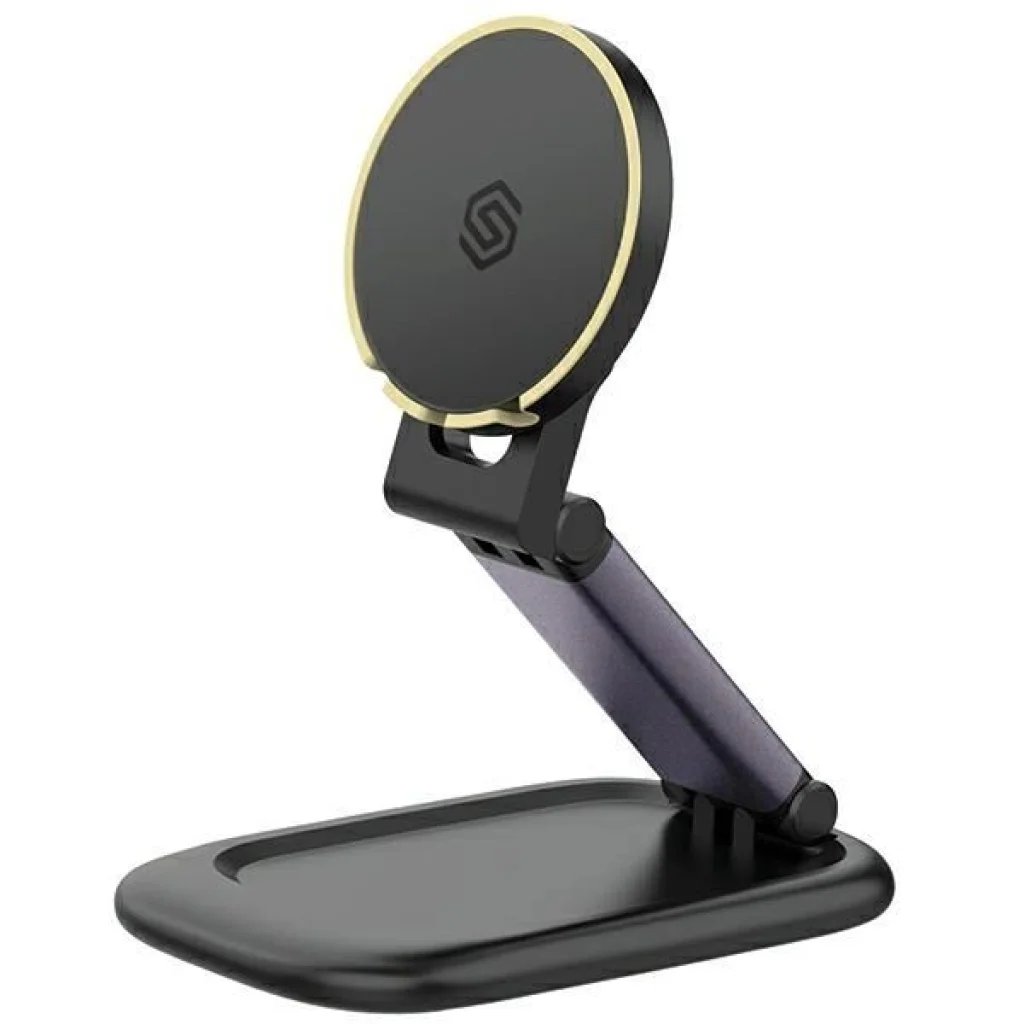 A SODI BM310 mágneses állvány az iPhone 15/14/13/12 sorozathoz, kompatibilis az Apple MagSafe vezeték nélküli töltővel. Az állvány összecsukható és állítható kamera tartóval rendelkezik. A mágneses telefontartó eltávolítható az alapról, és közvetlenül a laptopra rögzíthető. Vásárolj egy olyan eszközt, amely megváltoztatja a telefonod napi használatát, lehetővé téve annak összes funkciójának kihasználását. A tartozék tökéletes illeszkedése lehetővé teszi a telefon tökéletes rögzítését, így a kamerák lehetőséget adnak arra, hogy a telekonferencia során megoszthasd az asztalon lévő jegyzeteket a beszélgetőpartnereiddel. Egyszerűen állítsd be a telefon pozícióját, és emeld meg a magasságát akár 8 cm-rel a kényelmes nézési szög érdekében. Ez az ergonomikus telefontartó csökkenti a nyaki és háti feszültséget. Az állvány kialakítása lehetővé teszi a mágneses lemez cseréjét az iPhone MagSafe induktív töltővel. A kompakt méret és az összecsukható kar növeli a tartozék használatának kényelmét és megkönnyíti a szállítást. Stabil és tartós – egyszerűen helyezd a telefonodat közel a dokkolóhoz, hogy biztonságosan rögzítve legyen. A tartó stabil fém alappal rendelkezik egy állítható karral, amely megakadályozza a telefon felborulását és helyén tartja. Csúszásmentes szilikon párnák védik az asztalt a karcolásoktól. A tartó kompatibilis a MacBook Air / MacBook Pro készülékekkel (a 2017 előtti verziók) iPhone 14/13/12 sorozattal együttműködve. Technikai adatok Márka: SODI Modell: BM310 Típus: Kettő az egyben telefontartó Anyag: ABS, PC, TPU gumi, csúszásmentes szilikon párnák Egyéb: Cserélhető és eltávolítható mágneses lemez (a lemez cserélhető saját Apple MagSafe induktív töltődre). Szín: Fekete Kompatibilitás: MacBook/AirBook (2017-től gyártott) - iPhone 14/13/12