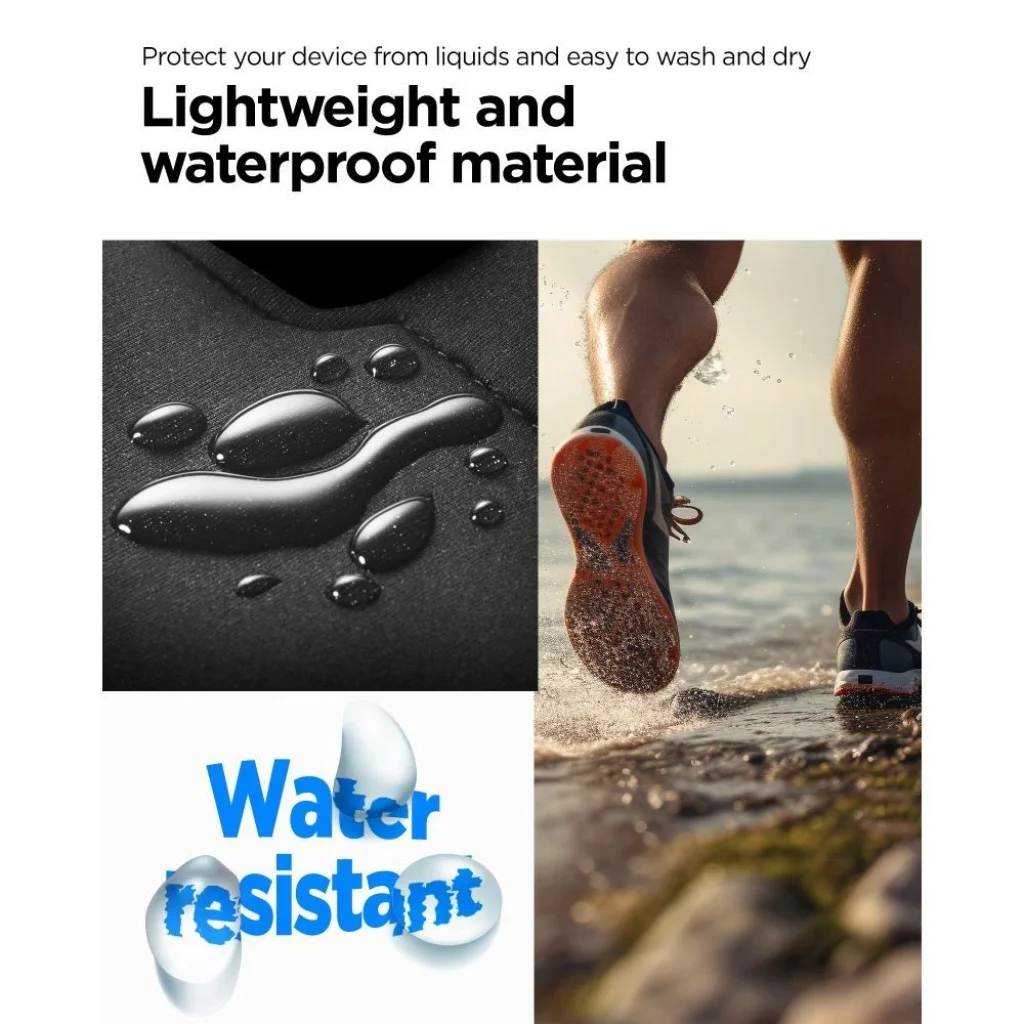A Spigen A703 Dynamic Shield karpánt tok tökéletes megoldás azoknak az aktív embereknek, akik még intenzív edzés közben sem szeretnének lemondani okostelefonjuk használatáról. Tartós és vízálló anyagokból készült, így készülékét még nehéz időjárási körülmények között is védi. Az állítható tépőzáras pántnak köszönhetően a tok tökéletesen illeszkedik a karhoz, anélkül, hogy korlátozná a mozgás szabadságát. Emellett a tok három kábel vagy fejhallgató csatlakoztatására alkalmas porttal rendelkezik, így tökéletesen illeszkedik. A fő zsebben biztonságosan tárolhatja okostelefonját, a kristálytiszta kijelzőrész pedig megkönnyíti a telefon navigációját. Továbbá a pánt oldalába egy praktikus kulcszseb került beépítésre. A precíz kivágásoknak köszönhetően minden szükséges funkcióhoz gyorsan és biztonságosan hozzáférhet. Fedezze fel az új dimenziót a szabadság és a kényelem terén az edzések és szabadtéri tevékenységek során a Spigen Armband A703 segítségével.