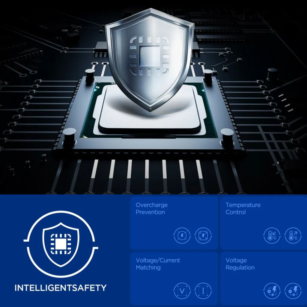 A Spigen számára a biztonság elsődleges. Az EE673EU töltő intelligens biztonsági funkciókkal van felszerelve, amelyek megvédik eszközeit a lehetséges károsodásoktól, meghosszabbítva azok élettartamát: