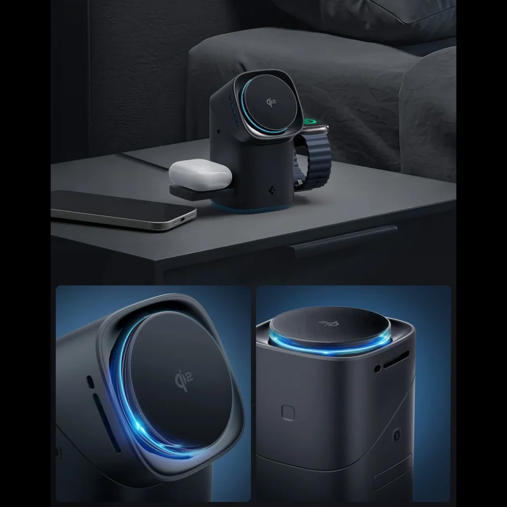 Spigen essential ef223ms 3in1 qi2 rotary magnetic magsafe vezeték nélküli töltőállomás fekete