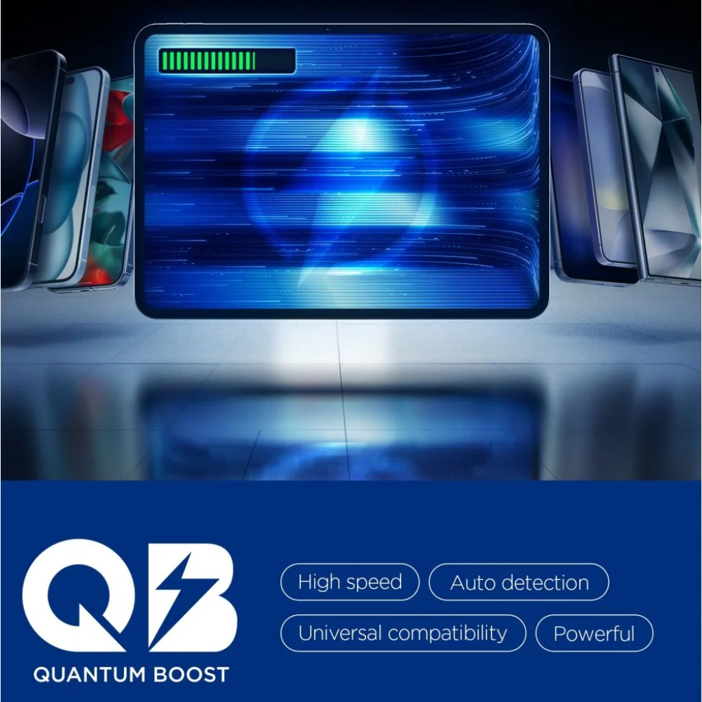 - Quantum Boost technológia: Intelligensen felismeri a csatlakoztatott eszközöket és automatikusan az optimális teljesítményt állítja be mindegyikhez, biztosítva a nagy sebességet, automatikus felismerést és univerzális kompatibilitást.