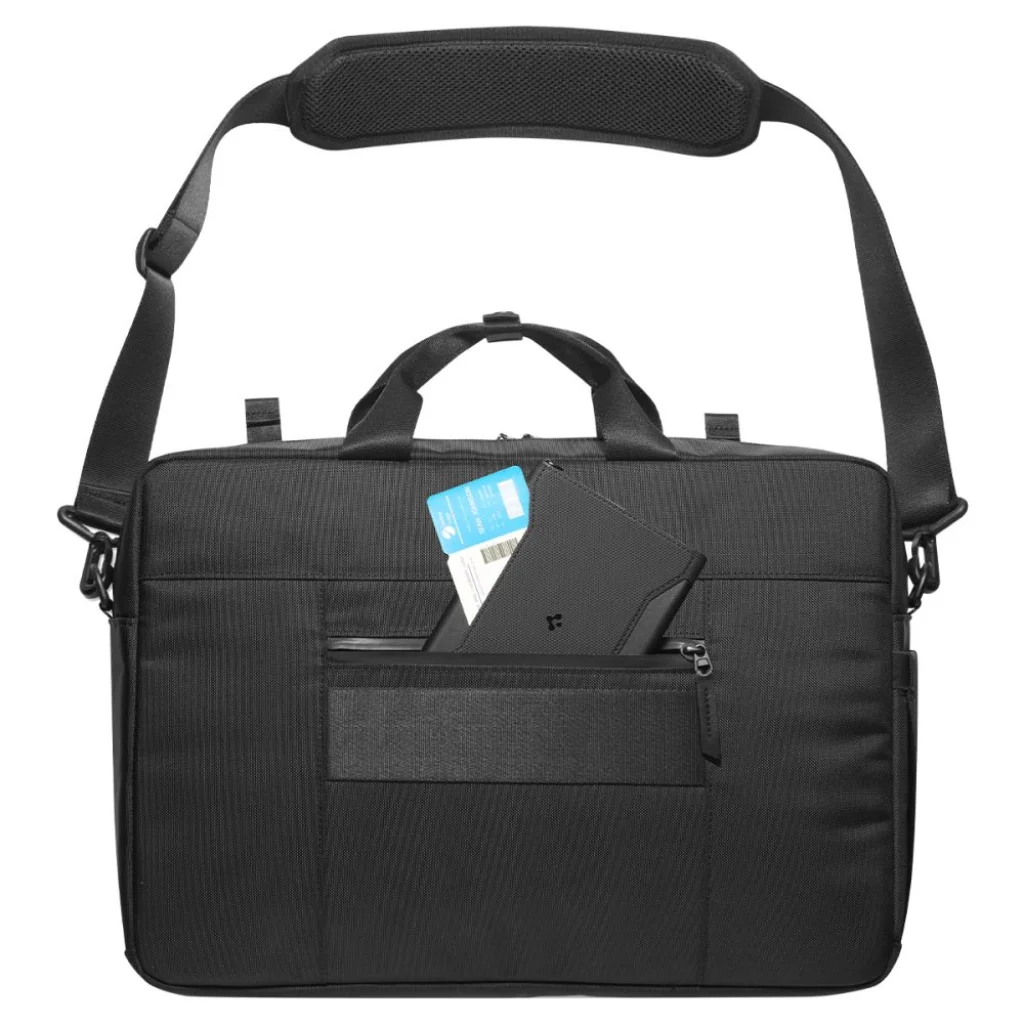A Spigen KD300 táska a modern dizájn és a maximális funkcionalitás ötvözete. Magas minőségű, PU bevonatú anyagból készült, ami tartósságot, kopásállóságot és könnyű időjárásállóságot biztosít. Tágas kialakítása, dupla cipzárral számos rekeszt kínál, beleértve egy párnázott zsebet akár 16 hüvelykes laptop számára és dedikált helyet az AirTag számára, ami megkönnyíti a rendszerezést és növeli a tartalma biztonságát. Az elülső fedél teljesen laposra nyílik, így megkönnyíti a csomagolást, és laptop állványként is szolgálhat – ideális megoldás mobil munkavégzéshez. Az elülső csatos zár nemcsak a táska biztonságát szolgálja, hanem könnyű kabát vagy esernyő rögzítésére is alkalmas. További zsebek – oldalsó a palack számára és hátsó dokumentumok vagy útlevél számára – növelik a használat kényelmét. A táska többféleképpen hordható: levehető, puha pánttal a vállon, kényelmes, rögzíthető fogantyúkkal vagy bőröndhöz rögzíthető hátsó pánttal. A SPIGEN KD300 kitűnő választás azok számára, akik egyszerre értékelik a stílust, a funkcionalitást és a mobilitást egy elegáns kiegészítőben.