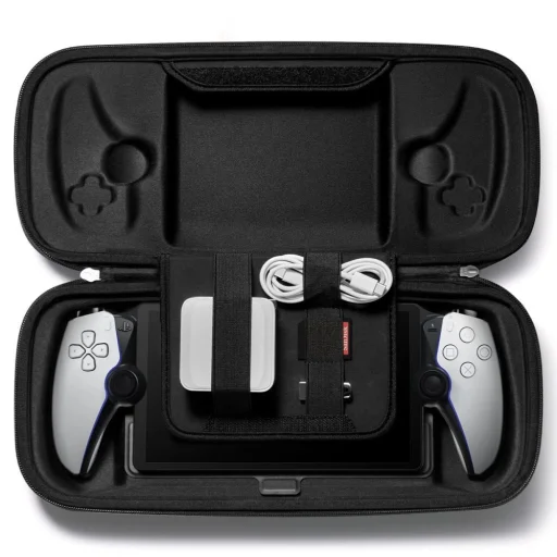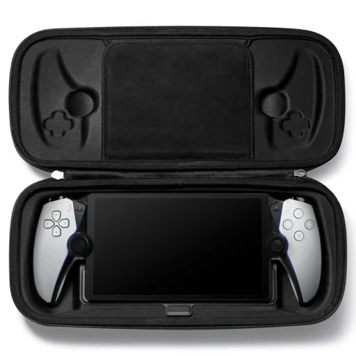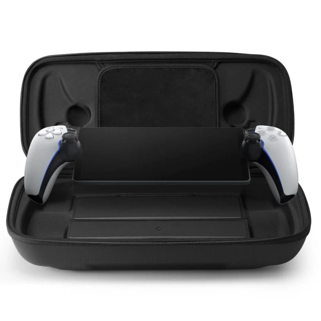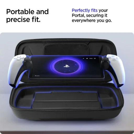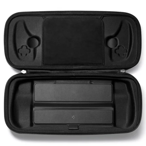 A Spigen Rugged Armor Pro tok elengedhetetlen útitárs a hordozható konzol tulajdonosai számára. A kemény, masszív tok cipzárral és gondosan kialakított belsővel megbízható védelmet biztosít készülékének. A tokban használt bevonat a legmagasabb minőségű anyagokból, például PU-ból és nylonból áll. A belső tér védő EVA habbal van bélelve, amely precíz illesztésekkel van ellátva a joystickok és gombok számára. A tépőzáras rögzítőfül további előnye a Spigen Rugged Armor Pro toknak. Velúrbéléssel készült, stabil fogást biztosítva, megóvva a konzolt és a képernyőt a sérülésektől és ütésektől. Ezen kívül a tok rejtett rekesszel rendelkezik egy nyomkövető eszköz számára, ami növeli a biztonságot utazás közben. A beépített tépőzárak lehetővé teszik a töltő és kábelek rendszerezését, így biztonságosan és kényelmesen használhatja a készüléket. Figyelembe véve a kínált biztonsági opciókat, a tok nagyon vékony. A borító matt mintázattal és félig-matt betétekkel, valamint a Spigen logóval van ellátva. Az egész nagyon rendezett és elegáns megjelenésű. Ideális termék azok számára, akik értékelik a stílust, kényelmet és biztonságot.