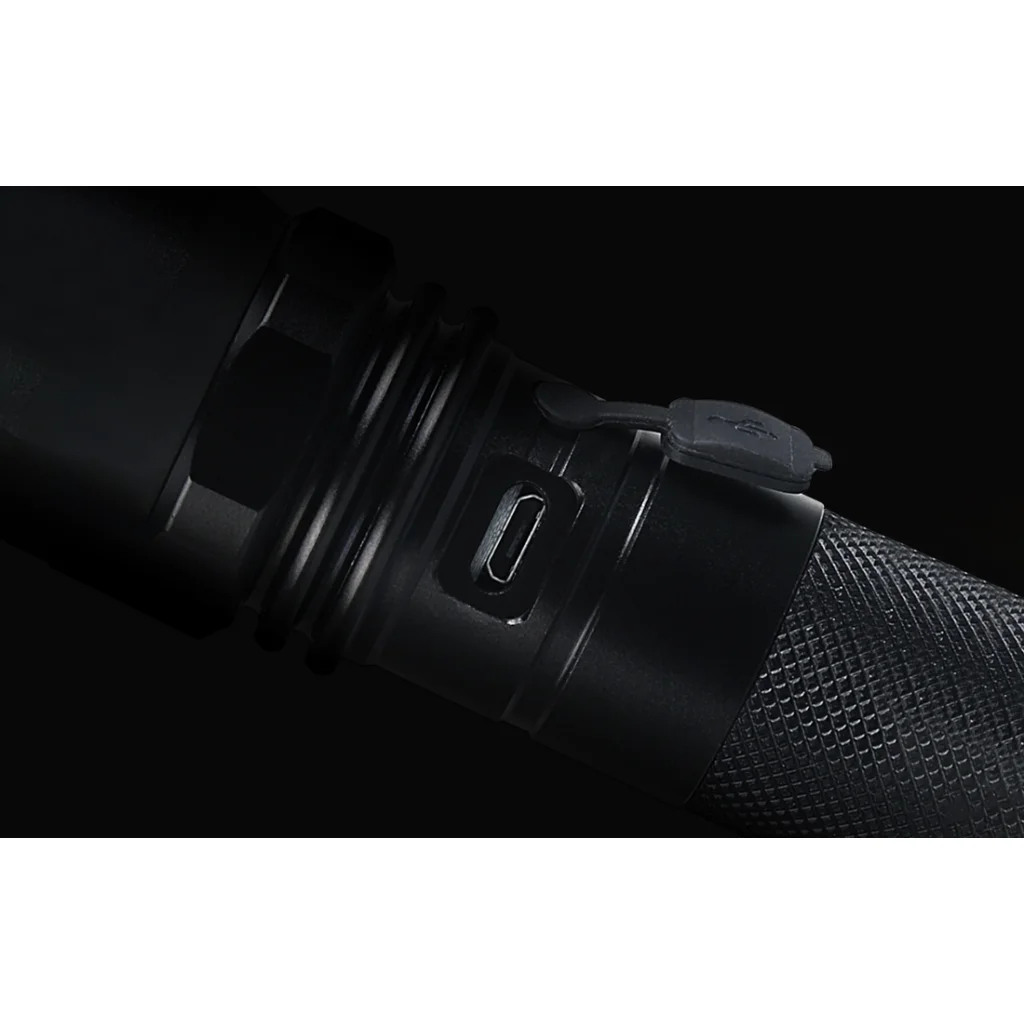 A zseblámpa egy 18650 akkumulátorral működik (tartozék). Az akkumulátor gyorsan újratölthető a mikro USB porton keresztül, így nincs szükség az akkumulátor eltávolítására a lámpából. Nincs szükséged speciális töltőre a zseblámpa töltéséhez - elég a USB kábelt csatlakoztatni a powerbankhoz, töltőhöz vagy számítógéphez. Használat közben a LED-es háttérvilágítás jelzi az akkumulátor töltöttségi állapotát: a zöld szín azt jelzi, hogy az akkumulátor töltöttségi szintje elegendő; a piros szín azt jelzi, hogy az akkumulátort fel kell tölteni. Töltés közben a piros villogó fény jelzi, hogy az akkumulátor töltődik, és amikor a szint eléri a 80%-ot, a fény zöldre vált.