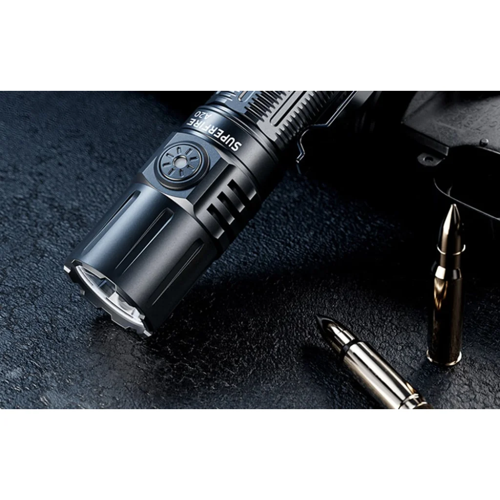 A Superfire A20 zseblámpa 1,700 lumen fényerővel tűnik ki. Az ilyen magas fényteljesítmény lehetővé teszi az extrém intenzív és tiszta fénysugarat, amely akár 300 méteres távolságot is képes megvilágítani. Ez a zseblámpa ideális olyan helyzetekben, amikor nagy területek megvilágítására van szükség, mint például szabadtéri keresések, mentési műveletek, valamint mindennapi tevékenységek, ahol a pontos megvilágítás kulcsfontosságú.