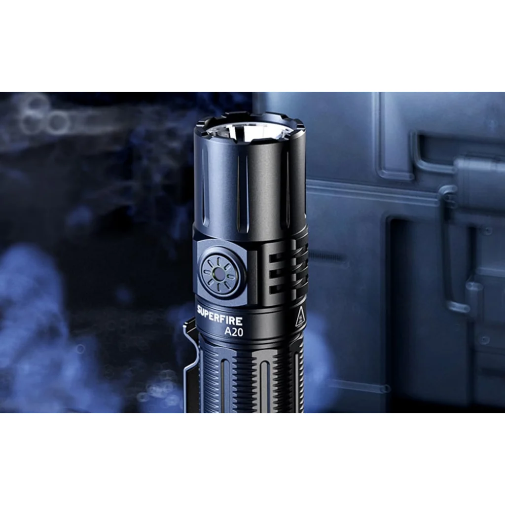 A Superfire A20 zseblámpa ötvözi a nagy teljesítményt és a sokoldalúságot. Kifejezetten a nagy igényeket támasztó felhasználók számára készült. Praktikus funkcióival és robusztus kialakításával az A20 zseblámpa széleskörű alkalmazásokhoz alkalmas - a mindennapos otthoni és szabadtéri használattól kezdve, a mentési műveleteken át, a nehéz terepen végzett taktikai műveletekig. Erőteljes fényforrással és intelligens áramellátó rendszerekkel felszerelve, a Superfire A20 megbízhatóságot és kiváló láthatóságot garantál még a legnehezebb helyzetekben is.