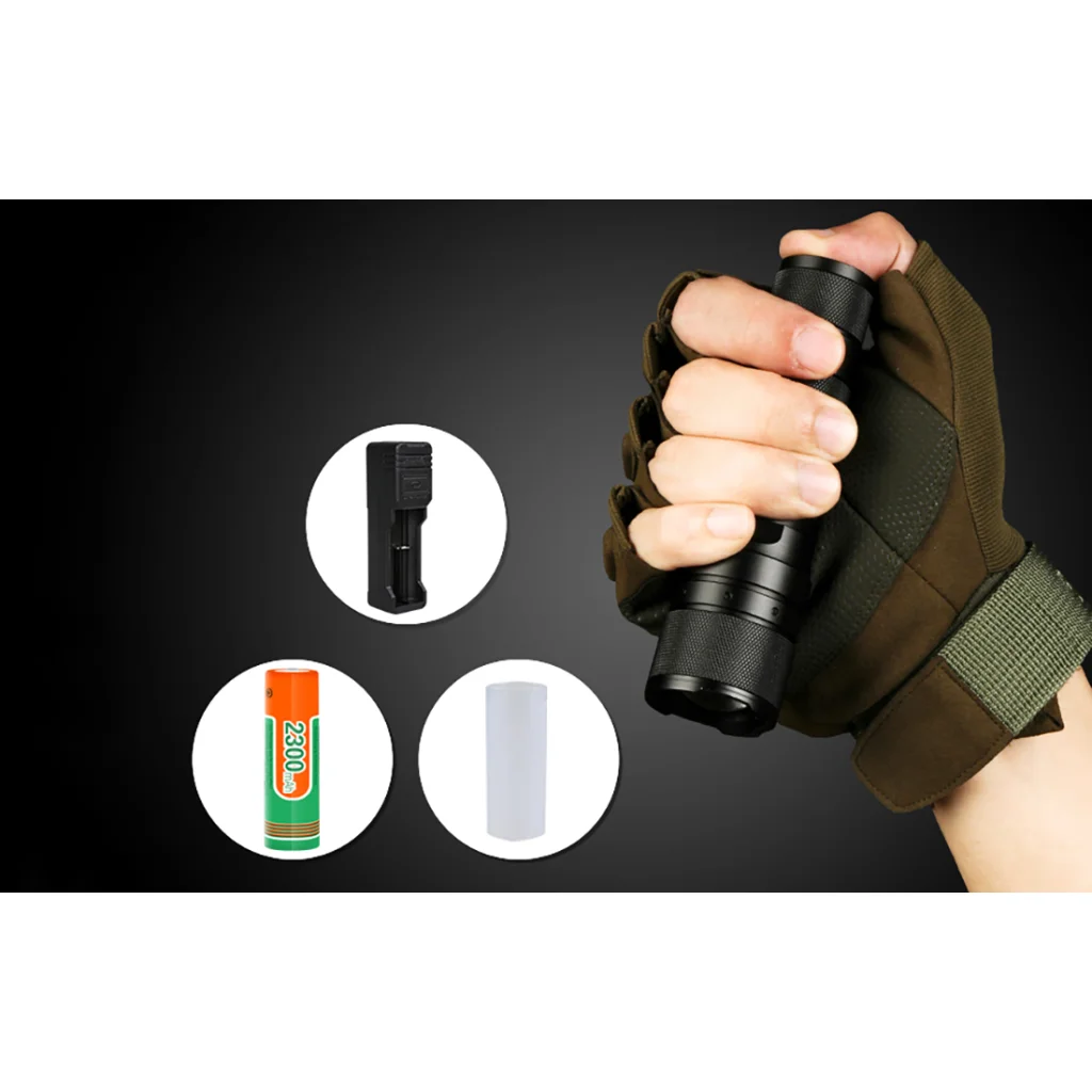 The flashlight is powered by one 18650 or three AAA batteries (batteries are not included in the packing list, and you have to purchase them separately). The battery can be charged very quickly using the supplied USB charger.