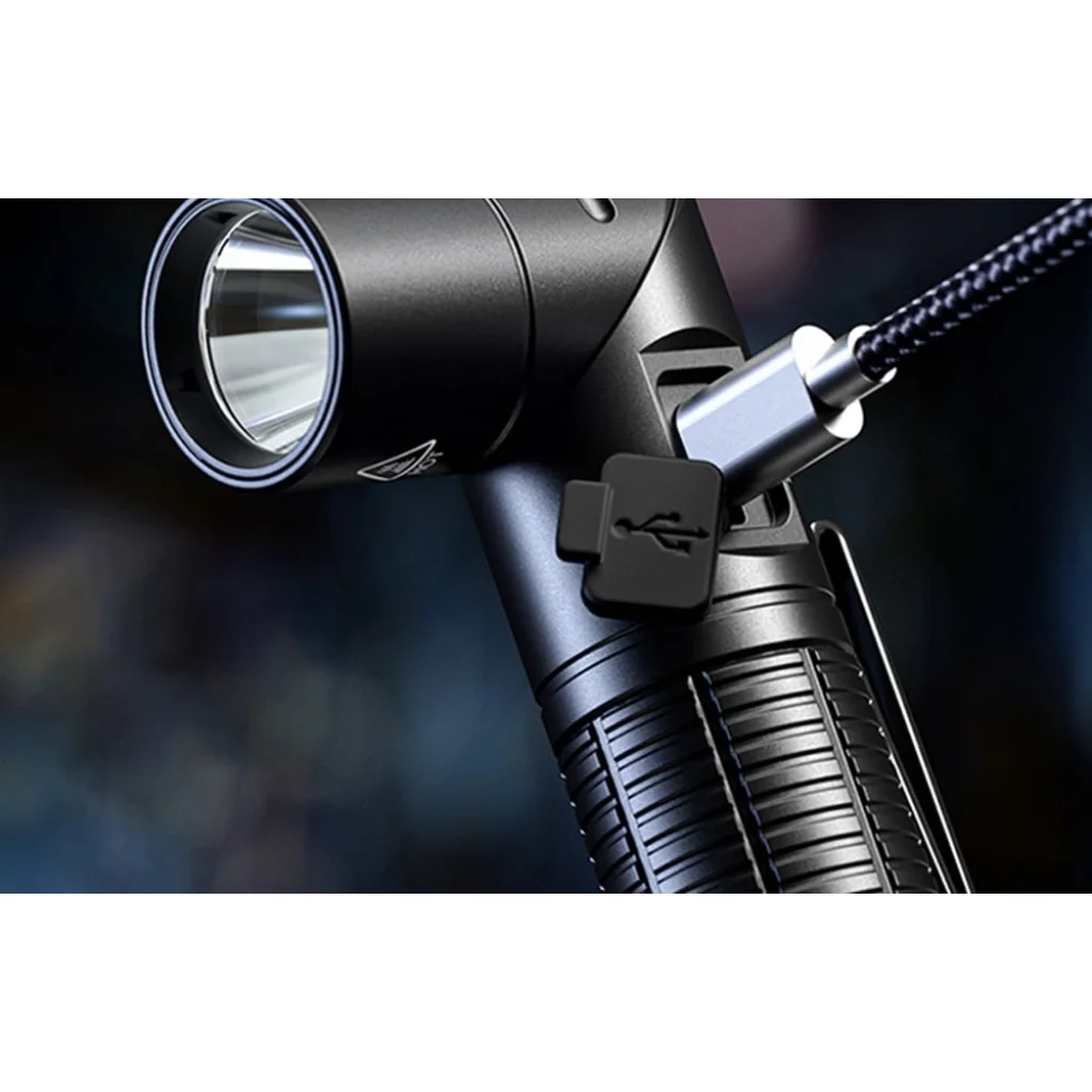 A G19-S zseblámpa nagy teljesítményű, cserélhető 14500 típusú lítium-ion akkumulátorral működik, amely hosszú üzemidőt biztosít egyetlen töltéssel. Az USB-C portnak köszönhetően az eszköz töltése gyors és kényelmes, lehetővé téve a töltést powerbankokkal, számítógépekkel vagy autós töltőkkel. A zseblámpának akkumulátor állapotjelzője van - a piros fény a töltést, a kék fény a teljes töltöttséget jelzi - ezzel minimalizálva az áram váratlan kifogyásának kockázatát. Ez a funkció különösen hasznos a hosszú utak során, ahol a tápegységhez való hozzáférés korlátozott lehet.