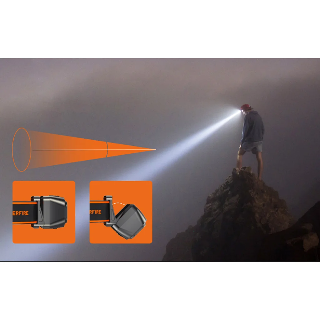The Superfire HL23 headlamp is made of high-quality ABS plastic and is not intimidated by harsh weather conditions. It is IP44 waterproof, so you can use it in the rain or snow without worry. It also has the advantage of being drop resistant from a height of 1m. Rugged construction goes hand in hand with ergonomics - the flashlight weighs 53 g, and the adjustable headband allows you to adjust the product to fit the user.
