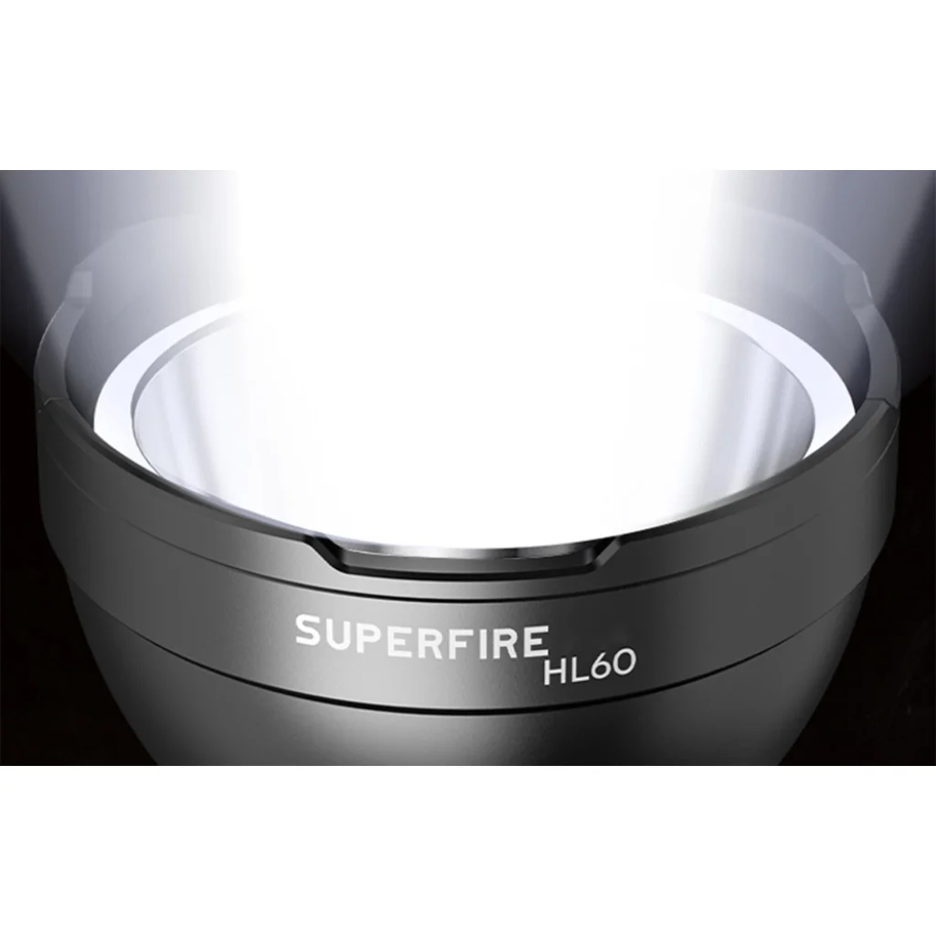 A Superfire HL60 fejlámpa zseblámpa nagy, 76 mm átmérőjű reflektorral rendelkezik, amely 2300 lm megvilágítási szintet biztosít, akár 330 méteres hatótávolsággal. Az újratölthető akkumulátor akár 9 órás működést garantál, és szükség esetén könnyedén újratölthető a mellékelt USB-C kábellel. 4 világítási üzemmód és állítható szög áll a rendelkezésére. A zseblámpa rendkívül kényelmes, és az IP44 védettségi besorolásnak köszönhetően szinte bármilyen körülmények között használható.