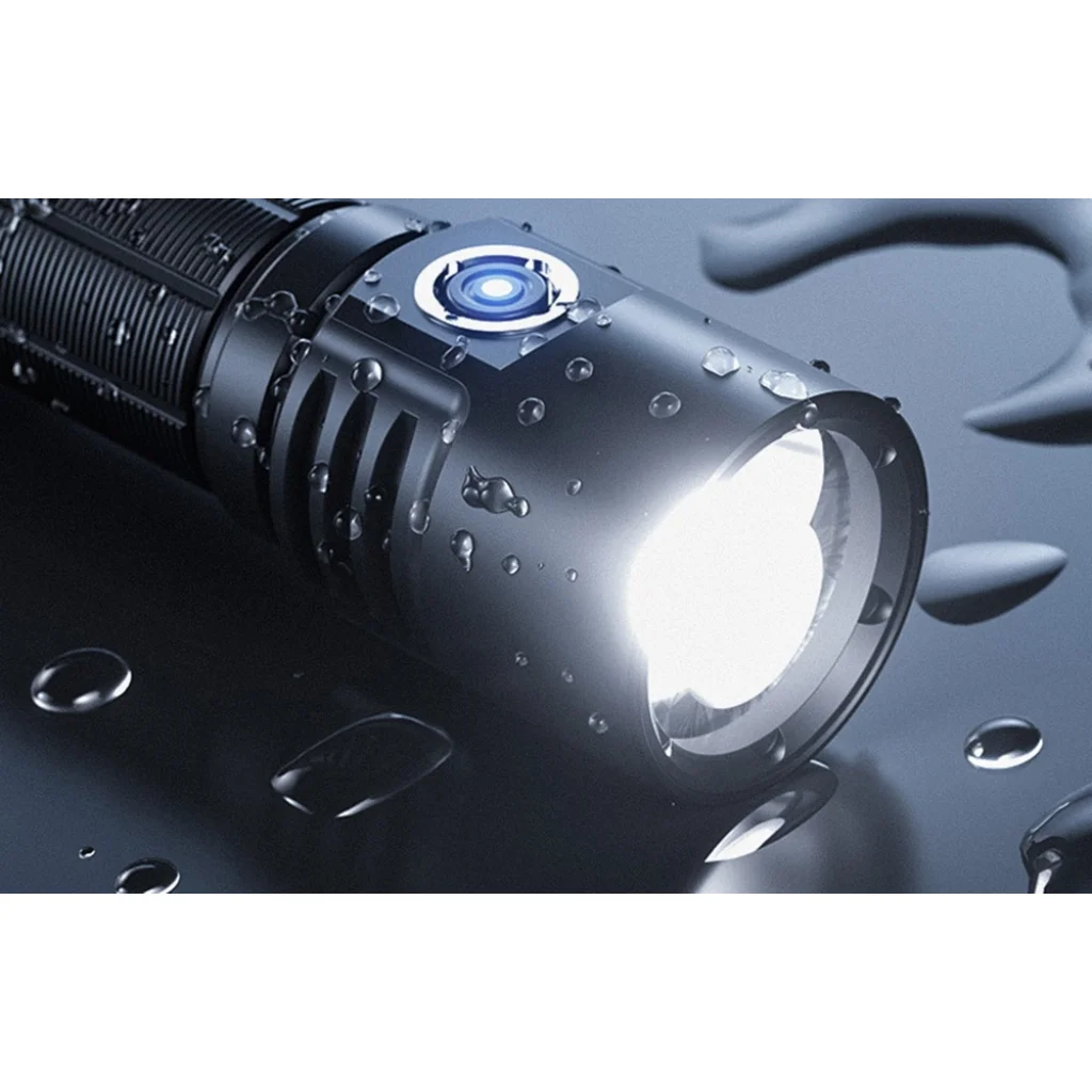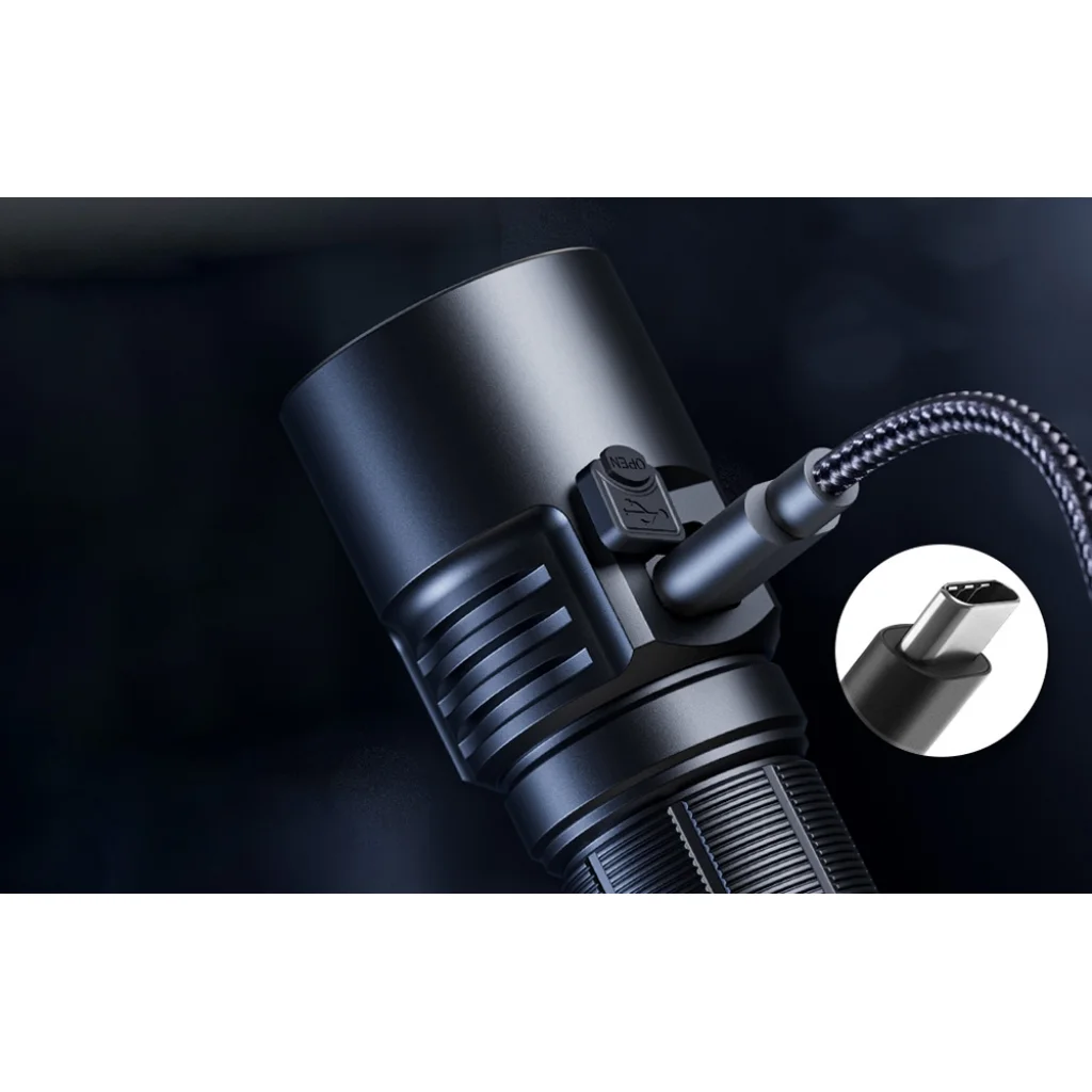 A lámpa 26650-es vagy 18650-es újratölthető akkumulátorral működik, amely körülbelül 6 óra folyamatos működést biztosít. Az USB-C portnak köszönhetően a töltés mindössze 4,5 órát vesz igénybe. A további funkciók, mint például a töltöttségi szintjelző és az akkumulátor cseréjének lehetősége, rendkívül praktikussá és kényelmessé teszik a lámpa használatát.