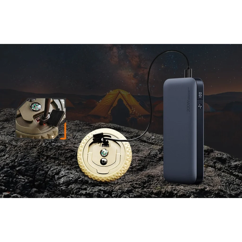 A készülék súlya mindössze 230 gramm, így könnyű és kényelmesen hordozható. A kompakt kialakításnak és az összecsukható kampónak köszönhetően a lámpa könnyen felakasztható egy ágra, sátorra vagy más pontra, így kényelmes megvilágítást biztosít anélkül, hogy a készüléket a kezében kellene tartania.