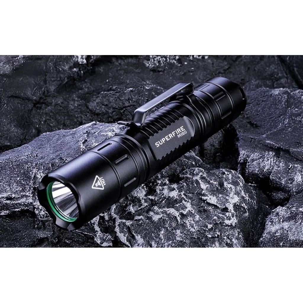 Öt világítási mód: A Superfire MI80-S öt világítási módot kínál: erős fény, közepes fény, gyenge fény, stroboszkóp és SOS üzemmód. Ezek segítségével az aktuális igényekhez igazíthatja a fény erősségét, akár teljes megvilágításra van szüksége egy éjszakai túrához, akár vészhelyzetben vészjelzésre.