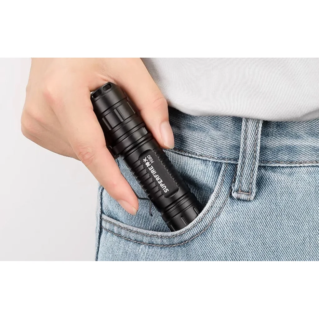 Kompakt és könnyű kialakítás: A Superfire MI80-S zseblámpa 12,7 cm-es hosszával és mindössze 59 g-os súlyával rendkívül hordozható. Az ergonomikus kialakítás kényelmes fogást biztosít, a kompakt méretnek köszönhetően pedig könnyen hordozható zsebben, hátizsákban vagy övre csíptetve. Tökéletes lesz mindennapi eszközként a különleges feladatokhoz.