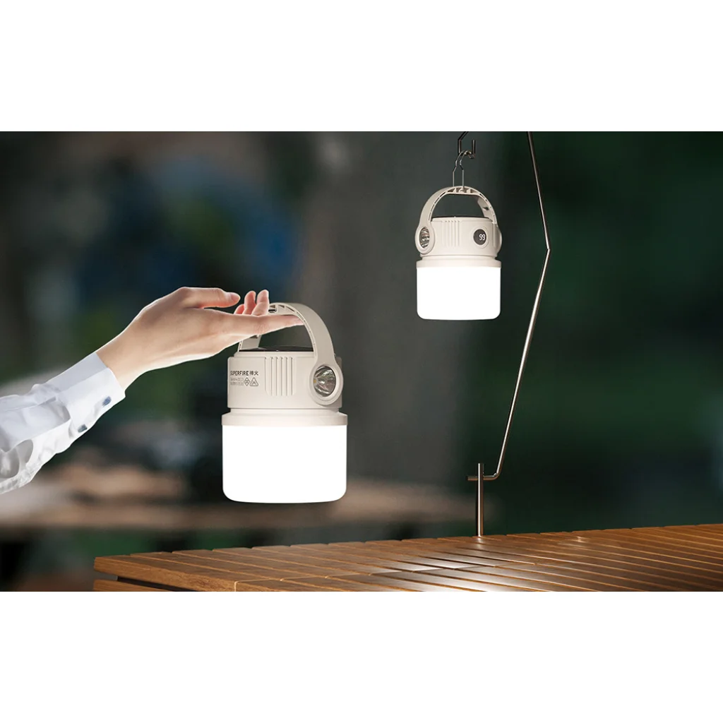 A Superfire T22 egy sokoldalú kempinglámpa, amelyet azok számára terveztek, akik a szabadban töltik az idejüket. Egyesíti a 360 fokos területi megvilágítást egy oldalfénnyel, amelynek hatótávolsága akár 180 méter is lehet, így a kempingezéstől kezdve a javítási munkákon át a hirtelen áramkimaradásokig számos helyzetben rugalmasan használható. A beépített akkumulátor töltöttségi szint kijelzővel könnyen nyomon követhető az energiaellátás, ami növeli a biztonságot a hosszabb expedíciók során.