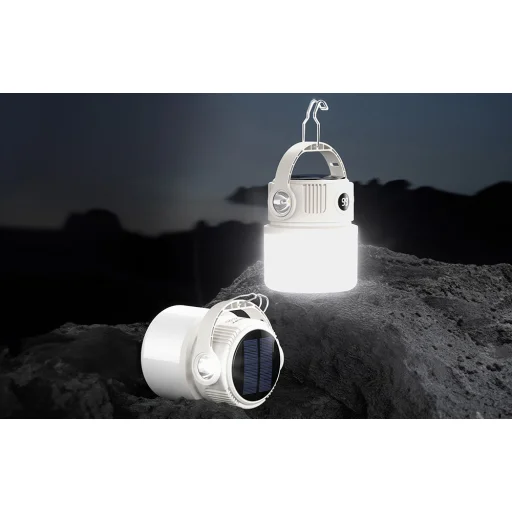 Praktikus fogantyú és fémhorog a teljes szabadságért: A lámpa stabil fogantyúval és fémhoroggal van ellátva, így bárhová felakaszthatja - sátorba, ágra, fészer alá vagy garázsba. Ez lehetővé teszi a lámpa magasabbra helyezését a jobb fényeloszlás és a szabadság érdekében, miközben különböző tevékenységeket végez.