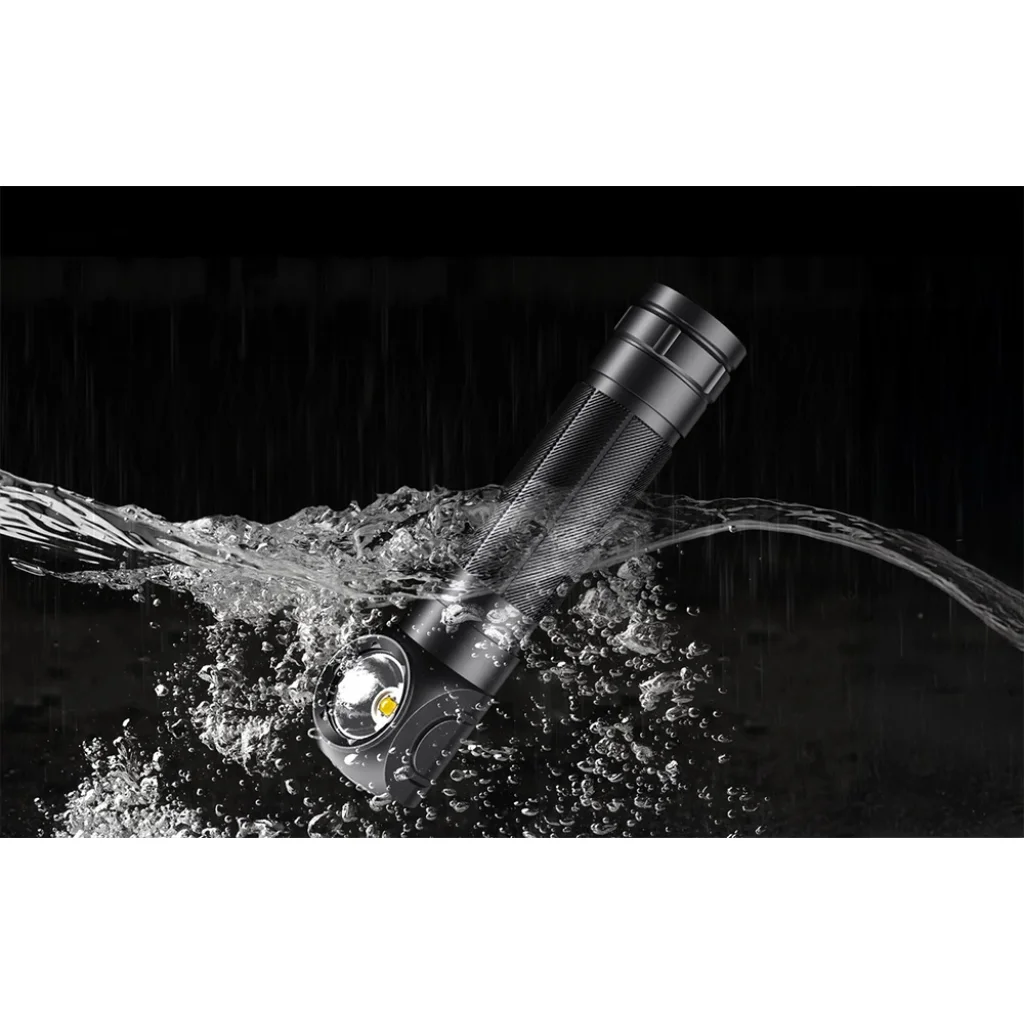 Az alumíniumötvözetből készült ház biztosítja a tartósságot és a mindennapi használatnak való ellenállást. A zseblámpa hordozható és IP43 vízálló, ami azt jelenti, hogy változó körülmények között és enyhe vízfröccsenések esetén is jól teljesít. Ez lehetővé teszi, hogy kültéren és a munkahelyen is használja, ahol a berendezések megbízhatósága fontos.