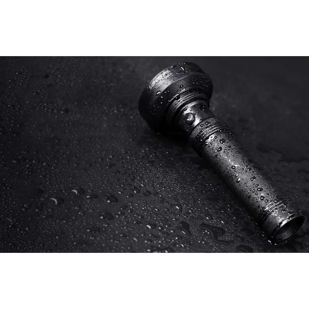 The Superfire flashlight is made of aluminum alloy, making it resistant to damage and drops from 1m. You can use it outdoors, it is protected by its resistance to water, moisture and strong wind. The ergonomic design of the UV06 makes it comfortable to use, and the non-slip finish guarantees stability.
