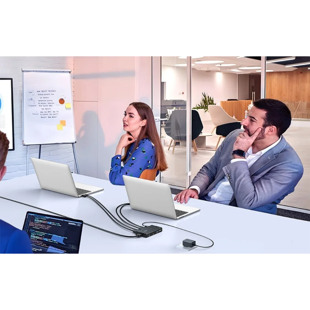 A kapcsoló 3 USB-A 3.0 porttal és egy USB-C porttal rendelkezik, amelyek lehetővé teszik billentyűzet, egér, nyomtató, hordozható meghajtó vagy egyéb kiegészítők csatlakoztatását. Az USB 3.0 szabvány akár 5 Gbps adatátviteli sebességet is biztosít, ami tízszer gyorsabb, mint az USB 2.0 szabvány.
