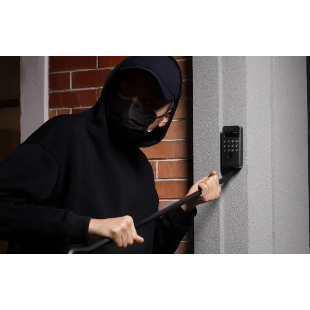 A zár riasztást küld, ha megpróbálják manipulálni, vagy ha eltávolítják az eszközt. A SwitchBot alkalmazáshoz való csatlakozás (Hub szükséges) lehetővé teszi az ajtó állapotának távoli felügyeletét és a hozzáférés kezelését bármikor - bárhonnan.