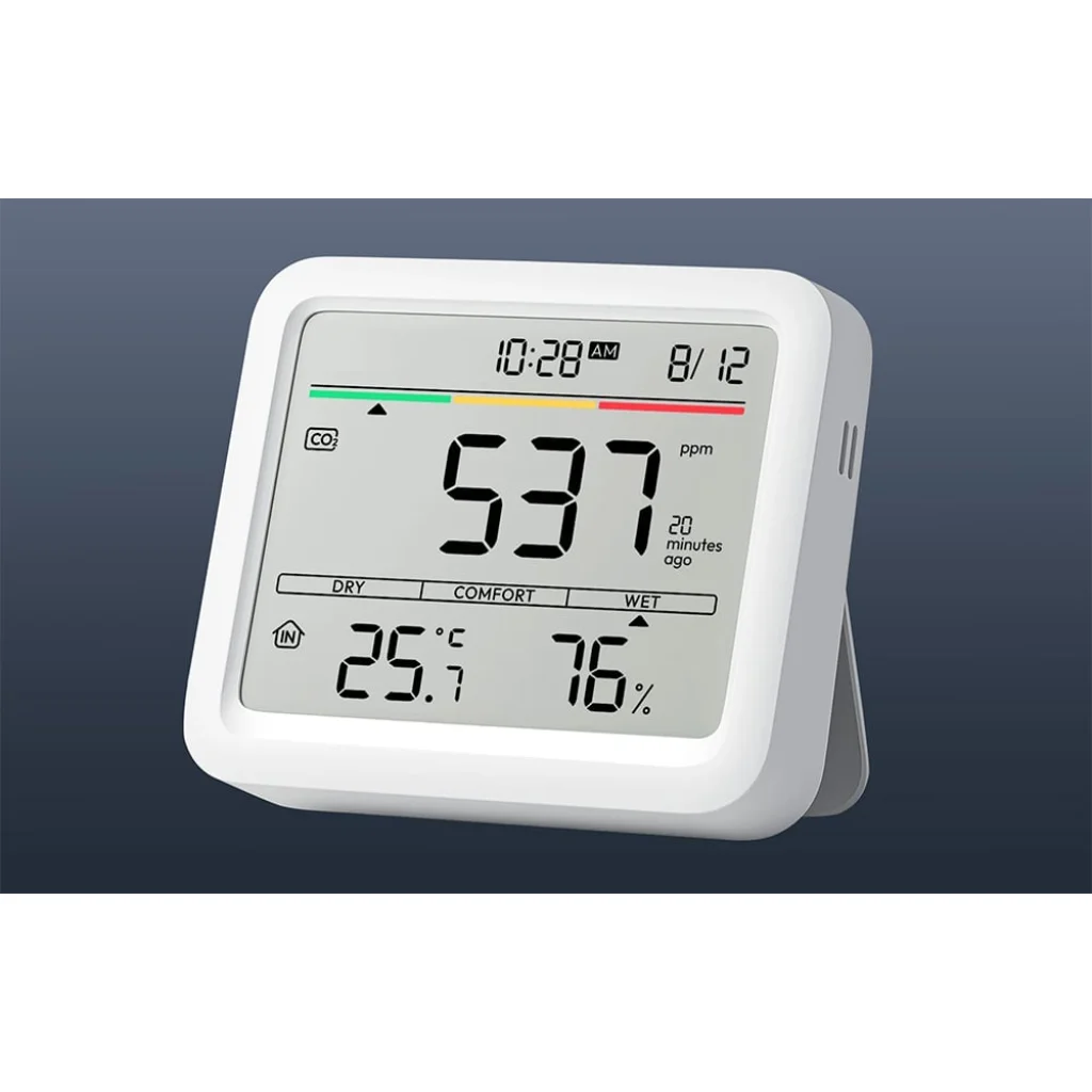 A SwitchBot Meter Pro CO2 hőmérő és higrométer nem csupán egy egyszerű hőmérsékletmérő készülék. Ez egy kompakt levegőminőség-ellenőrző állomás, amely folyamatosan kijelzi a CO₂-szintet, a páratartalmat, a hőmérsékletet, az aktuális időt és az általános környezeti komfortot. Egy pillantás is elég a kijelzőre, hogy megtudja, mikor szükséges szellőztetni a helyiséget, vagy hogyan teremthet jobb klímát az irodában, a hálószobában vagy a gyerekszobában. Kiváló pontossággal, gyors leolvasási idővel és intelligens funkciókkal ez a készülék a mindennapi kényelmet szolgálja.