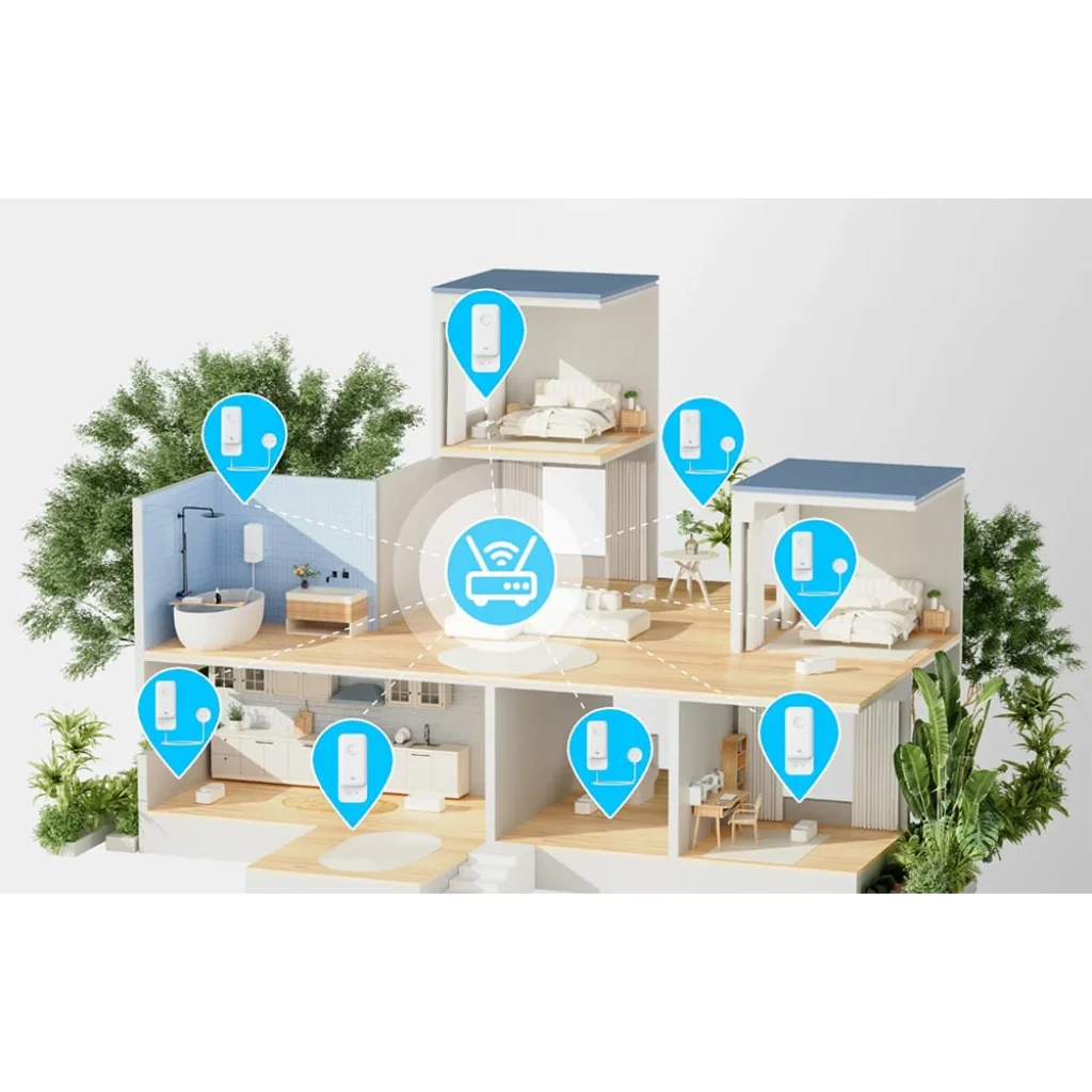 Az érzékelő Wi-Fi-n és Bluetooth-on keresztül működik, így nincs szüksége további eszközökre. Csak csatlakoztassa a SwitchBot alkalmazáshoz, és máris működőképes. A Wi-Fi hatótávolsága nyílt területen akár 120 métert is elér, így könnyedén lefedheti az egész házat vagy lakást.