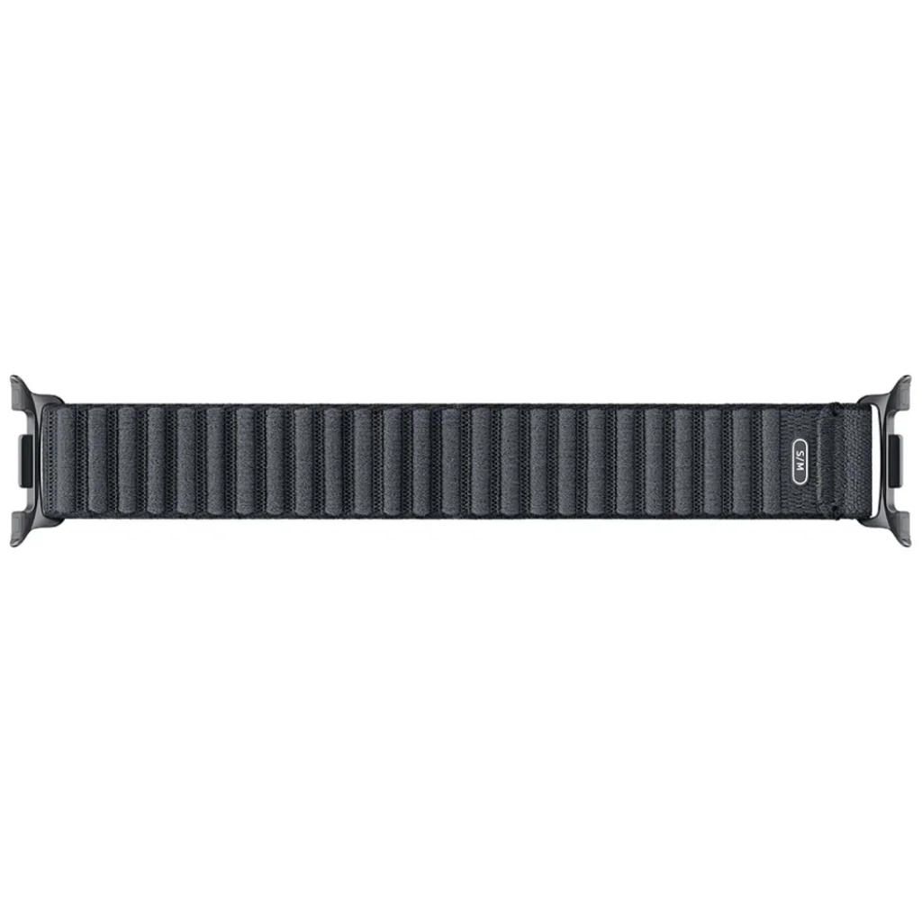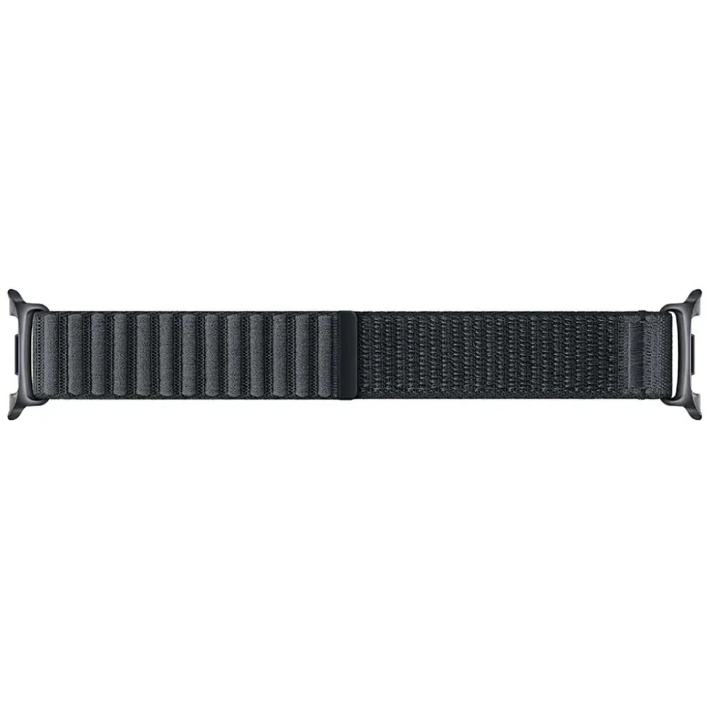 A Samsung Fabric szíj puha és kényelmes, kívül-belül újrahasznosított anyagokból készült. A nylon anyag hosszú távú kényelmet biztosít, a tépőzáras rögzítés pedig kontúros illeszkedést biztosít, így ez a legkönnyebb szíj, amelyet a Galaxy Watch8-hoz terveztek. Szerkezete puha és légáteresztő, hosszan tartó viselést tesz lehetővé. A sima textúra növeli a kényelmet, így egész nap könnyedén viselhető.