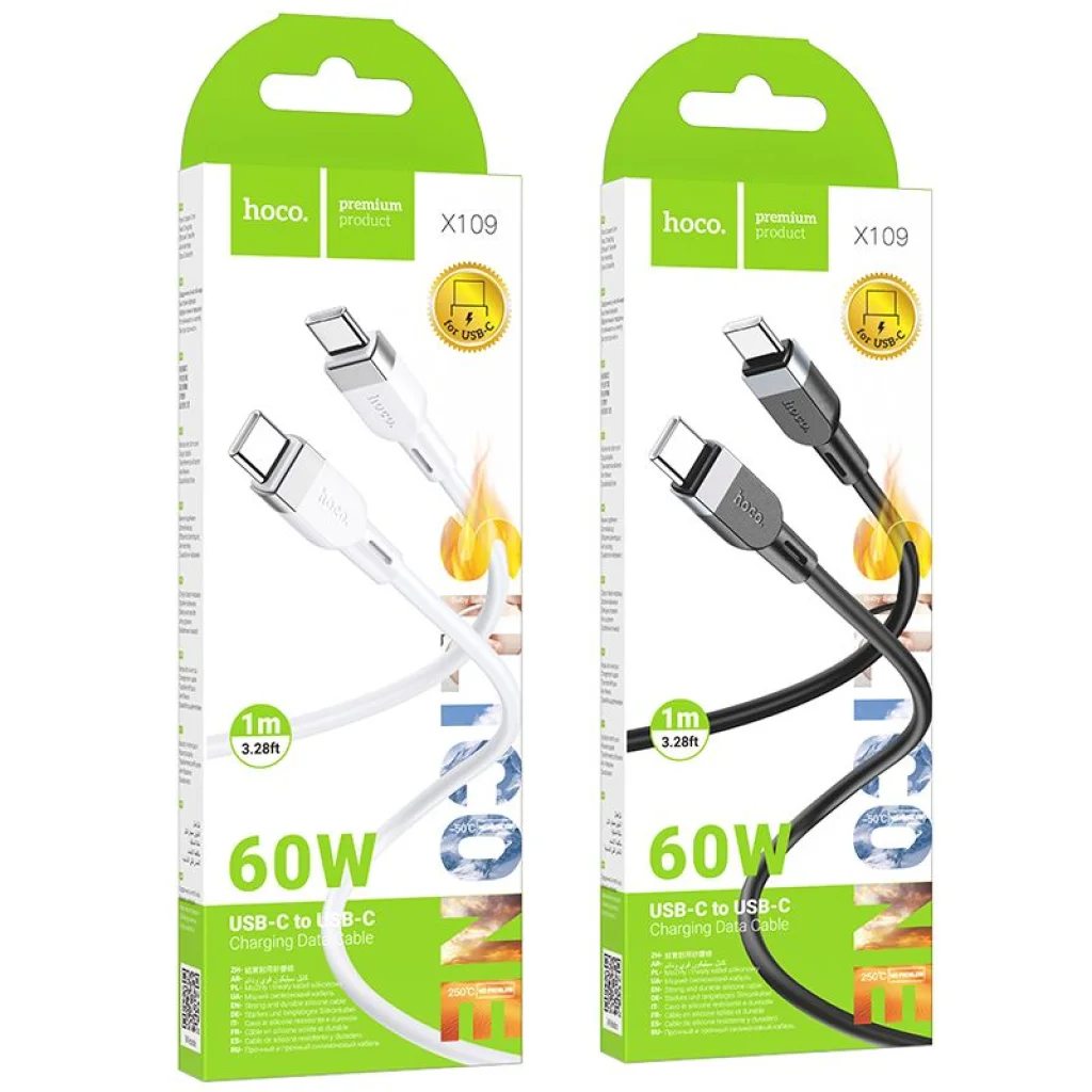 Szilikon kábel USB C - USB C Hoco 3A 60W 1 m X109 fekete