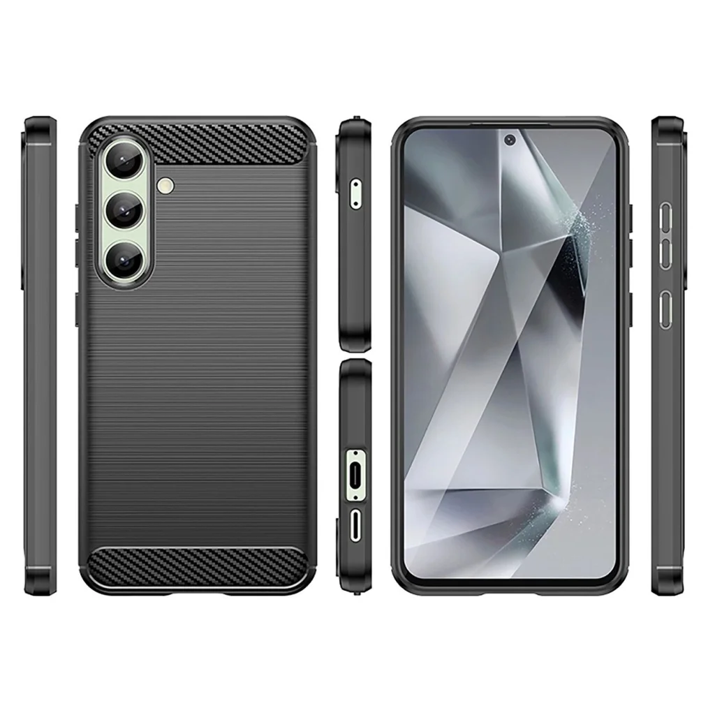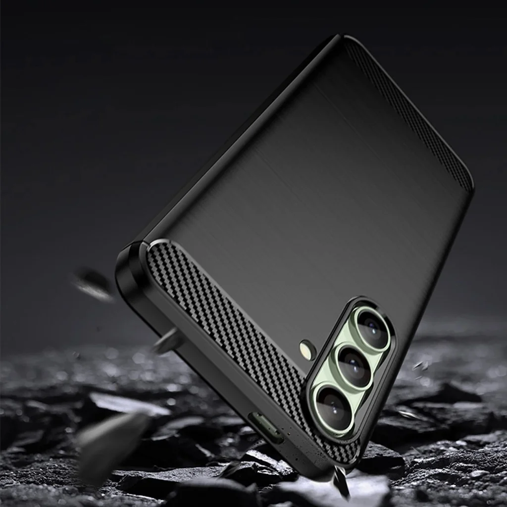 Szilikon tok Carbon Case Samsung Galaxy S24 FE - fekete tökéletes kombinációja a stílusnak, védelemnek és funkcionalitásnak, amely megfelel a legigényesebb felhasználók elvárásainak is. A megemelt szélek páratlan védelmet biztosítanak mind a képernyő, mind a kamera lencsék számára, minimalizálva a karcolódások és sérülések kockázatát. A precíz kivágások garantálják a könnyű hozzáférést az összes porthoz és funkcióhoz, míg az integrált gombok megvédik azokat a portól és szennyeződésektől. Az ideális illeszkedés miatt a tok remekül fekszik a telefonon, kiemelve annak karcsú sziluettjét. Kényelmes, csúszásmentes kialakítása biztos fogást és kényelmes használatot nyújt a mindennapokban.