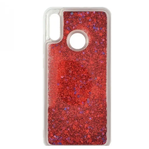 Szilikon tok Huawei P Smart 2019 flitteres folyadék mintával piros