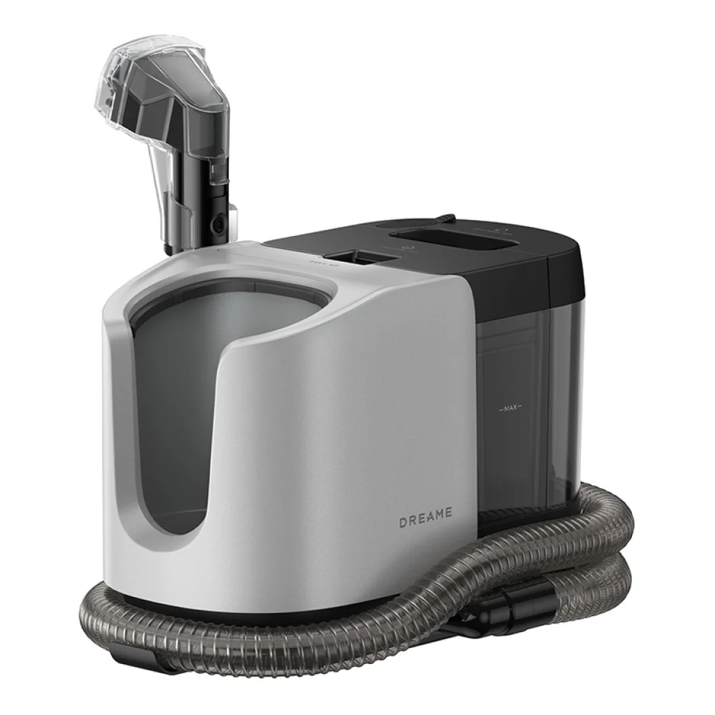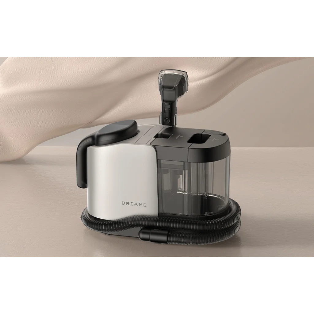 A Dreame H14 Mix és H14 Dual porszívókhoz való mosóalap a készülék funkcionalitásának praktikus bővítése, amely lehetővé teszi a szövetek, kárpitok és szőnyegek hatékony tisztítását. Lehetővé teszi a textilfelületek mély szennyeződések eltávolítását és felfrissítését további eszközök nélkül. Emellett a rugalmas tömlő és a kefe megkönnyíti a precíz tisztítást a nehezen hozzáférhető helyeken.