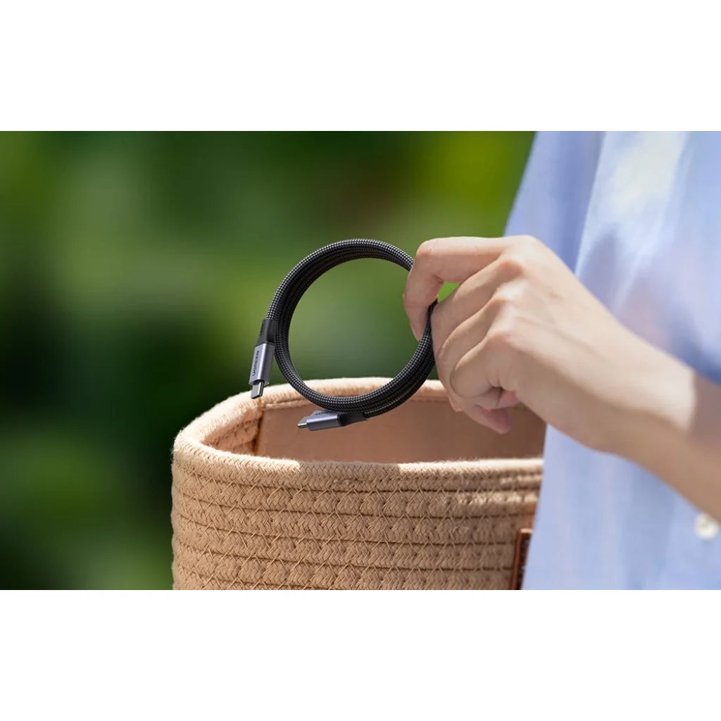 A beépített mágnesek lehetővé teszik, hogy a kábel automatikusan visszahúzódjon és kompakt formát tartson. Ez megakadályozza, hogy összegabalyodjon a hátizsákjában vagy az asztalán, és kényelmesen tárolhatóvá teszi. Ez egy egyszerű megoldás, amely valóban megkönnyíti a kábel mindennapi használatát.