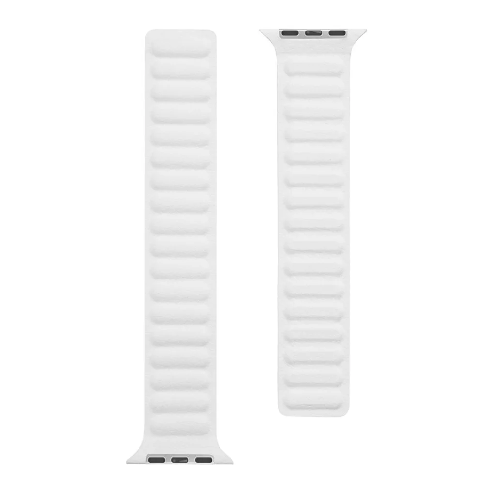 Termék leírás Bőr anyaghasználatú óraszíj, mágneses kapcsolódással Csat nélküli design Bőrbarát anyaghasználatának köszönhetően kellemes viselet Méret: 140 - 220mm méretű csuklóig Csomagolása újrahasznosított papírból készült!