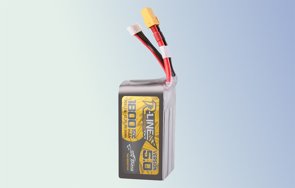 A Lipo Tattu R-Line 5.0 verzió 1800mAh 22.2V 150C 6S akkumulátor XT60 csatlakozóval kiváló választás a profi FPV versenyzők számára, akik megbízható energiát keresnek FPV modelljeikhez. Egyedülálló gyártási technológiájának és fejlett anyagainak köszönhetően kiemelkedő teljesítményt, nagy kapacitást és kivételes teljesítményt nyújt, ami a legnehezebb körülmények között is teljesít.