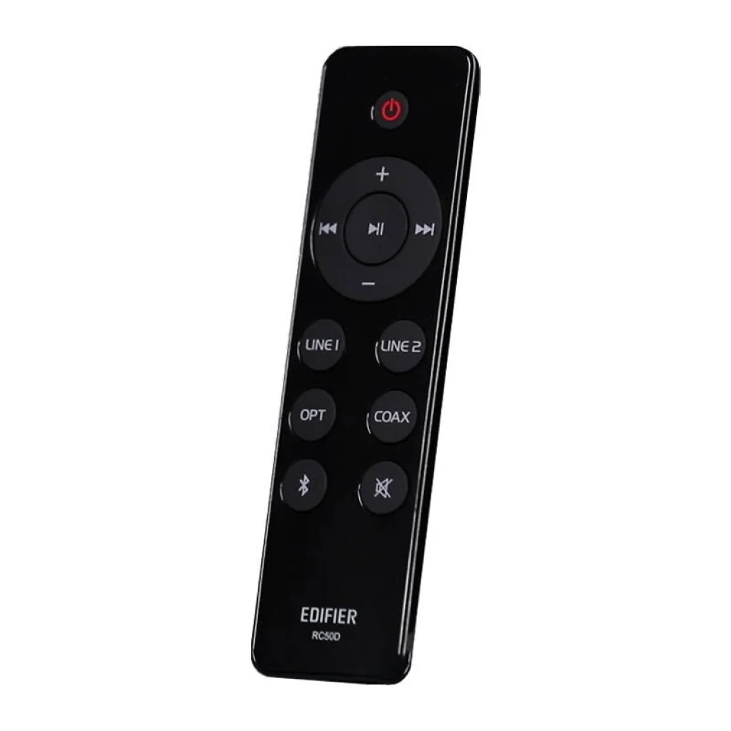 A távirányító lehetővé teszi a hangszórórendszer legfontosabb funkcióinak kényelmes vezérlését. Nem számít, hol tartózkodik – csak néhány mozdulat, hogy az Edifier R2850DB működését az igényeihez igazítsa. Kényelmesen állíthatja a hangerőt, kihagyhatja a dalokat, vagy megváltoztathatja a hangforrást. A távirányító CR2032 elemmel működik.