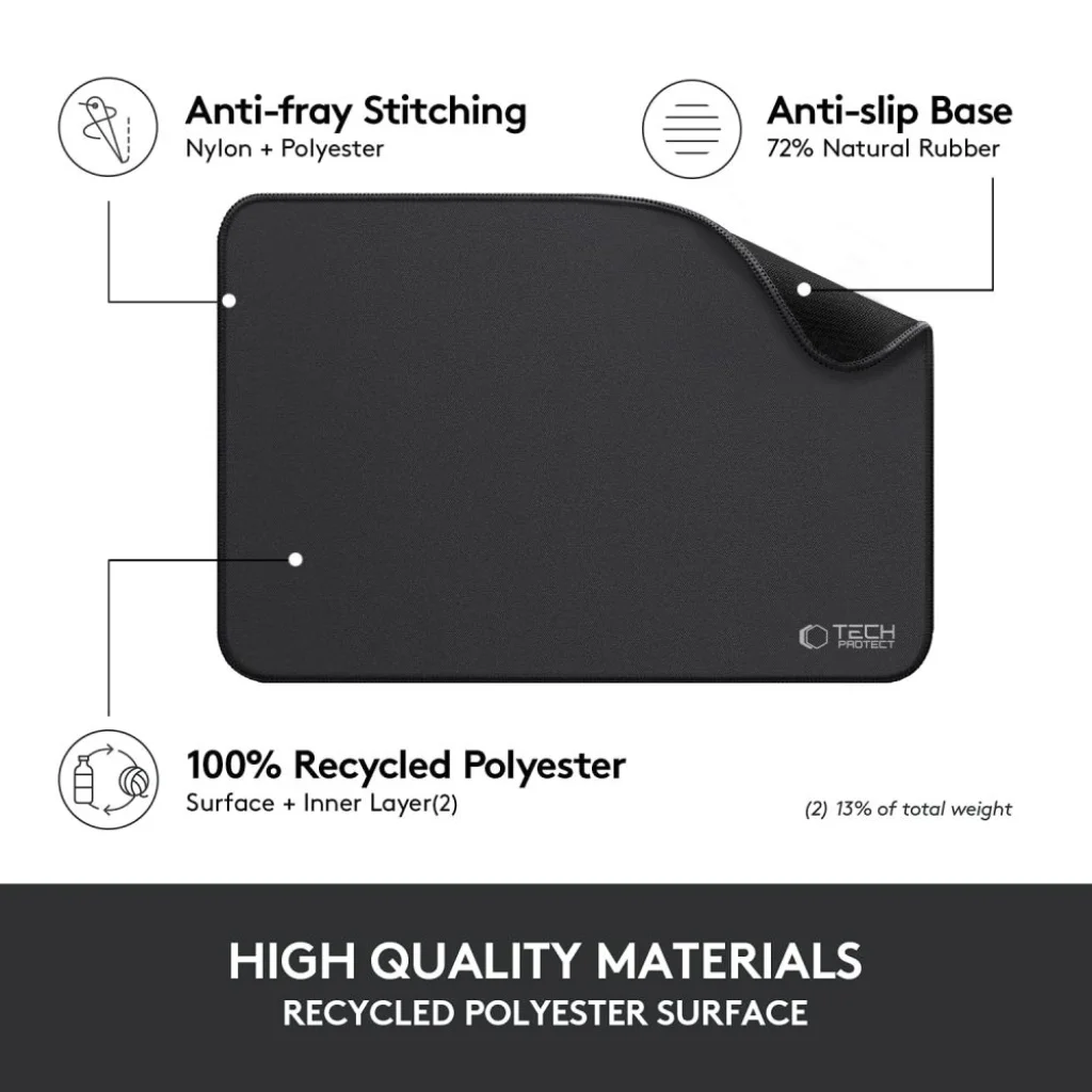 A Tech-Protect A100 egy kompakt és funkcionális egérpad, amelyet a pontosságot, kényelmet és tartósságot értékelő felhasználók számára terveztek. Ideális irodai munkához, tanuláshoz vagy mindennapos használatra, mivel minden felületen sima és pontos egérmozgást biztosít. Magas minőségű anyagokból készült, sima textil felülettel rendelkezik, amely garantálja a szenzor precíz követését, valamint csúszásmentes aljjal, amely stabilan tartja az egérpadot az asztalon. Az élvarrás védi a foszlástól, növelve a termék tartósságát. Emellett, az egérpad vízálló bevonattal rendelkezik, amely megakadályozza a folyadékok felszívódását és megkönnyíti a tisztítást. Minimalista dizájnjának köszönhetően tökéletesen illeszkedik bármilyen munkaállomáshoz.