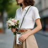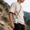 - Vállon át / crossbody módon vagy csuklón viselhető